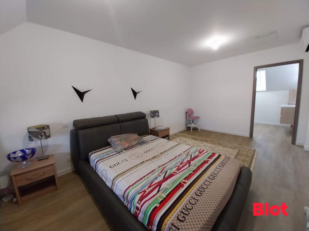 À l'étage, vous découvrirez une grande mezzanine qui peut facilement être transformée selon vos besoins : bureau, salle de jeux, ou espace détente. Les trois chambres de cet étage sont généreuses et modernes, avec des espaces de rangement optimisés. L'une des chambres bénéficie même d'une salle d'eau privée, offrant ainsi une intimité totale. Vous serez également charmés par la superbe salle de bains moderne, avec ses équipements de qualité, qui invite à la détente. Pour plus de confort, un WC séparé est également présent à l'étage.