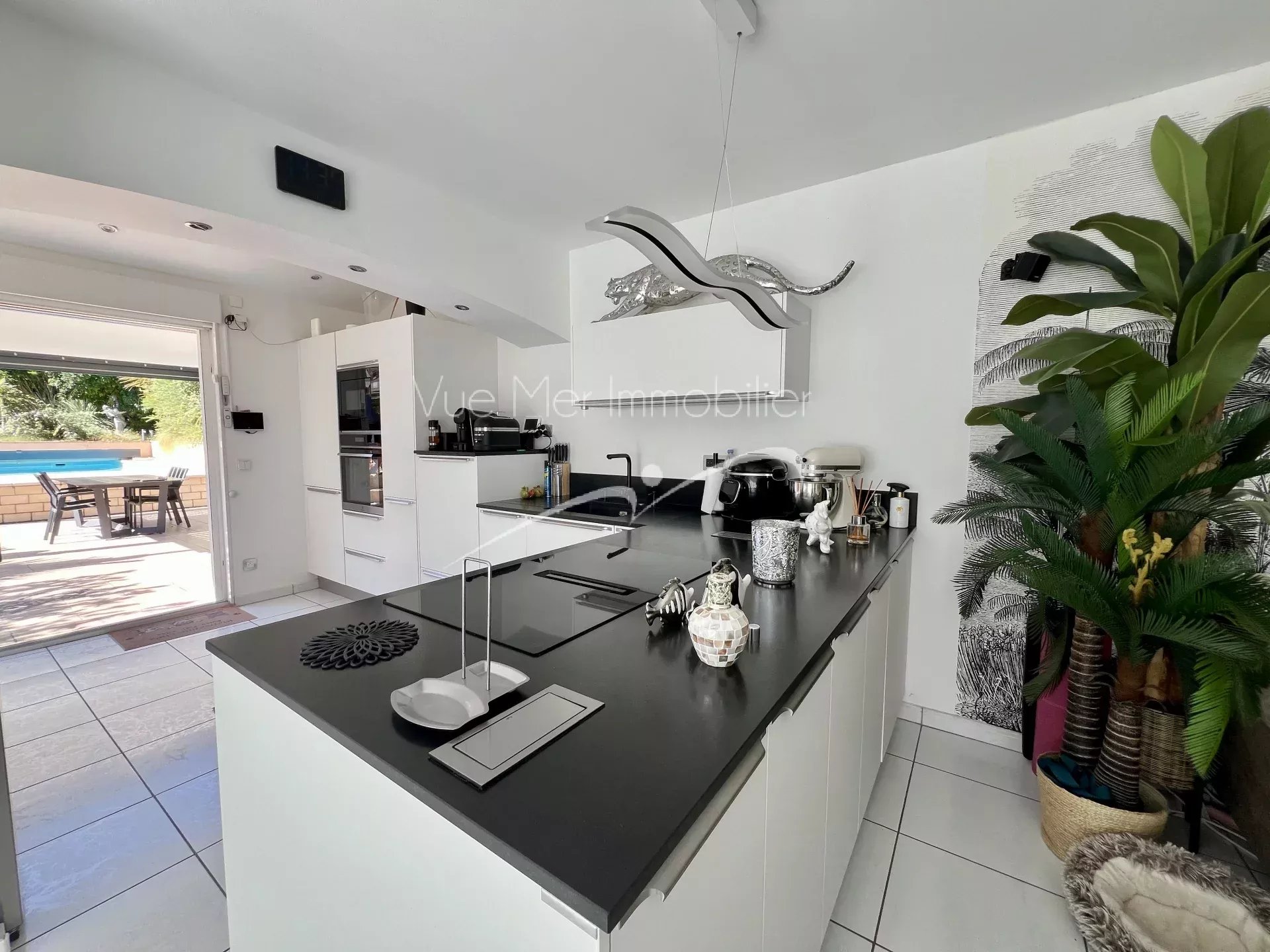 ? Grand séjour lumineux avec cuisine ouverte de 42m2 , donnant directement sur la terrasse et la piscine grâce à une baie vitrée à galandage. Pergola bioclimatique.