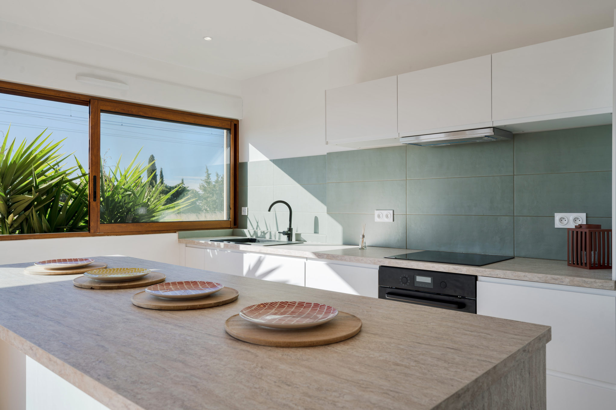L'appartement bénéficie d'une exposition plein sud ainsi que d'une vue mer lointaine mais bien existante, apportant luminosité et sensation d'ouverture tout au long de la journée.