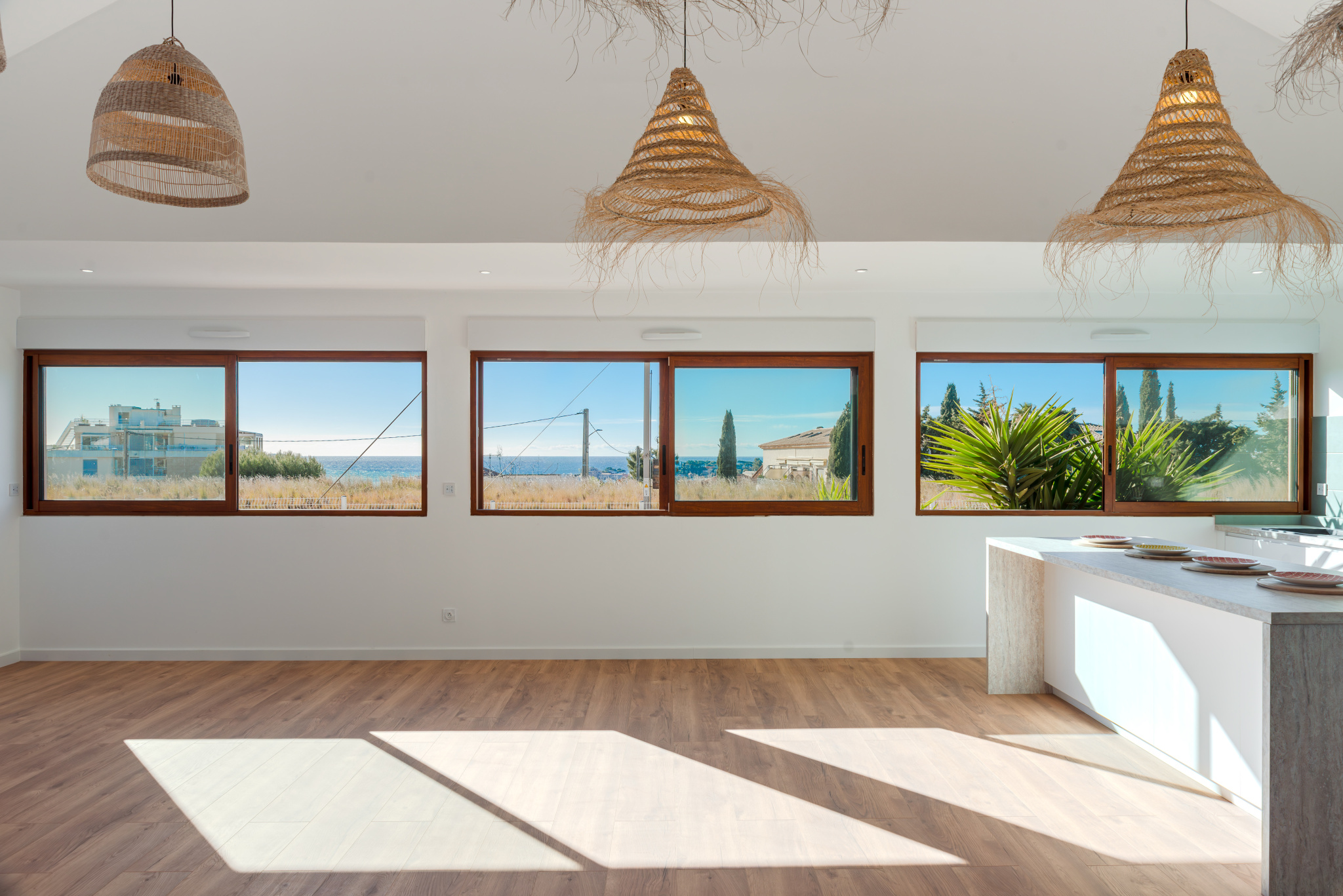 Nous avons particulièrement apprécié les volumes généreux de la pièce de vie, la luminosité offerte par l'exposition sud avec vue mer, la rénovation intégrale réalisée avec soin, le dernier étage au calme ainsi que l'absence totale de charges, élément devenu particulièrement recherché sur le marché local.