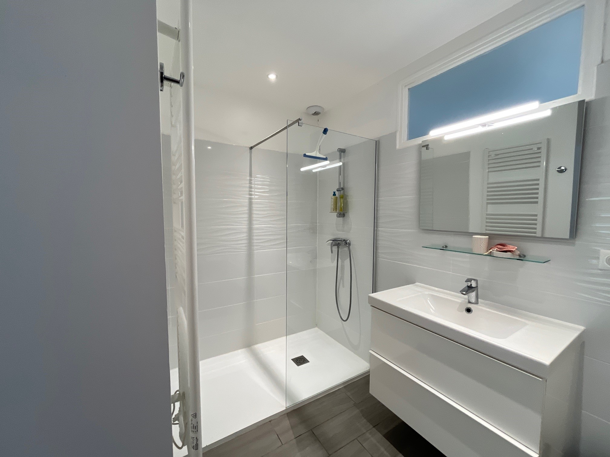 À l'étage, vous découvrirez une grande chambre dortoir avec sa salle d'eau, une chambre avec salle d'eau privative, ainsi que deux autres chambres, dont l'une dispose également de sa propre salle d'eau. Un grand garage complète ce bien, offrant un espace de stationnement ou de stockage confortable, ainsi qu'une cave.