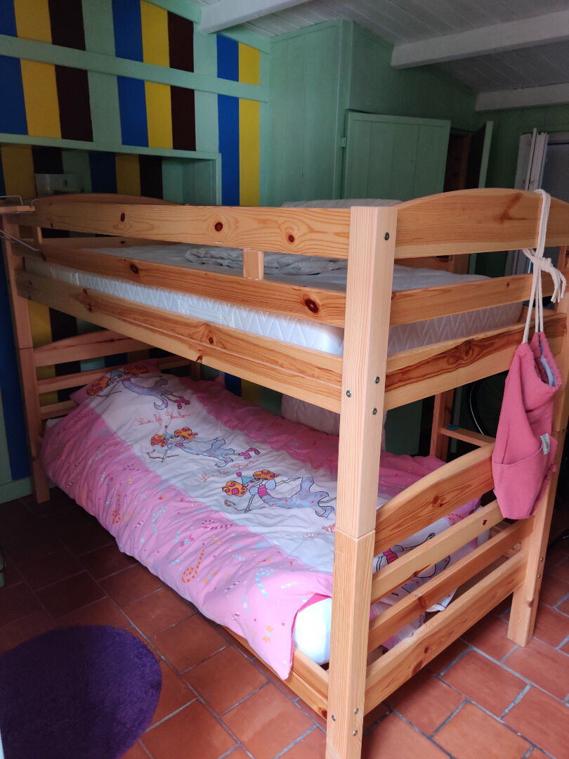 Elle se compose d'un séjour lumineux, d'une cuisine indépendante prolongée par une réserve, ainsi que d'un dégagement desservant quatre chambres. Vous trouverez également une salle d'eau avec wc et un wc séparé. Chauffage électrique.