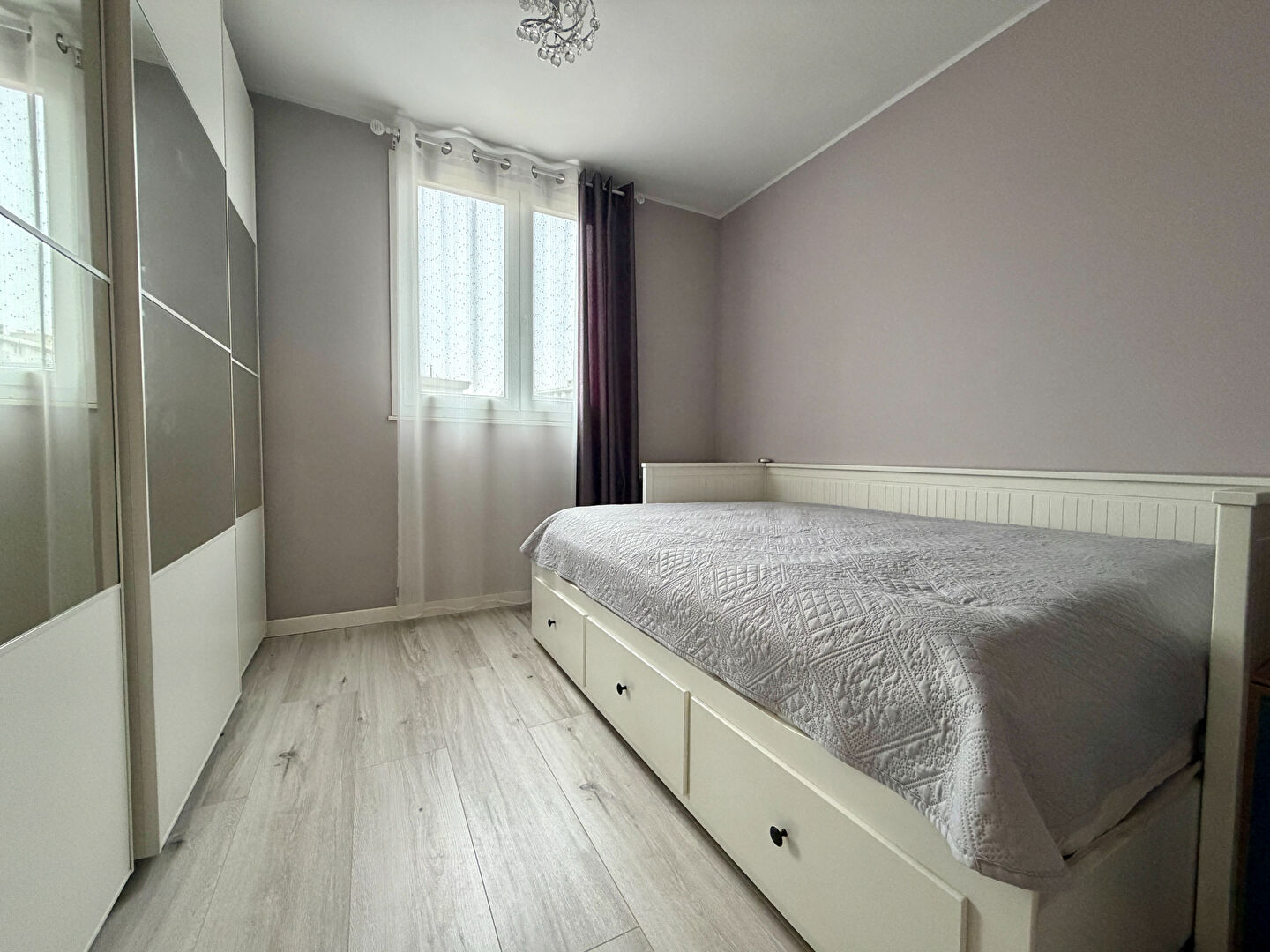 Il comprend un double séjour lumineux ouvrant sur un balcon, une cuisine, une chambre, une salle de bains ainsi que des WC séparés.