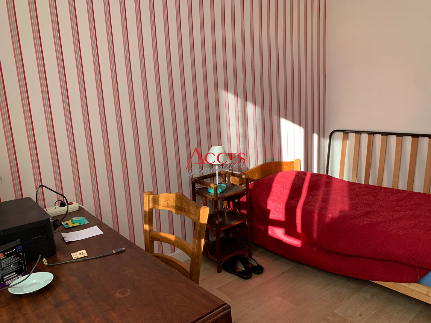 Il se compose d'une entrée avec placards, d'une grande pièce de vie chaleureuse incluant séjour et salle à manger, ainsi que d'une cuisine indépendante avec accès à un balcon. Salle d'eau aménagée avec WC séparés.