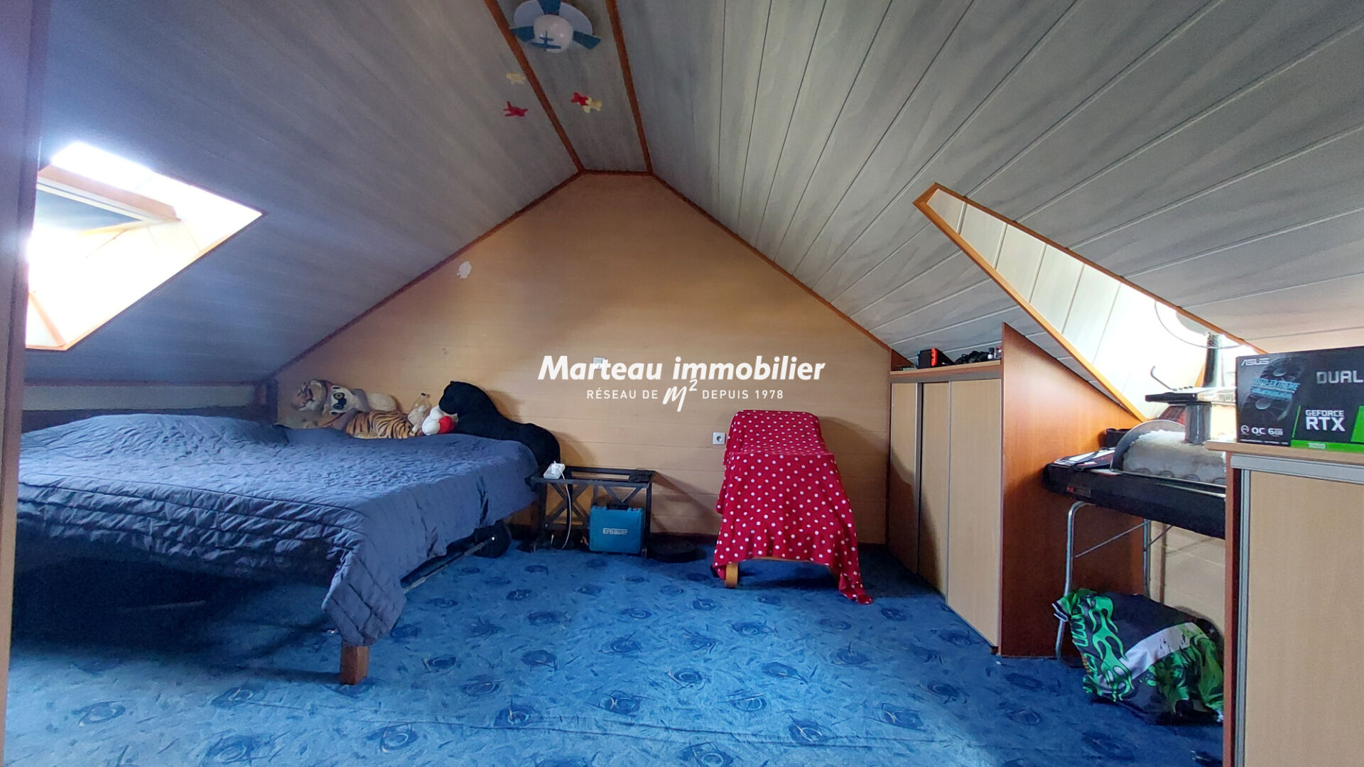 À l'étage, une mezzanine apporte un bel espace supplémentaire et dessert deux chambres.