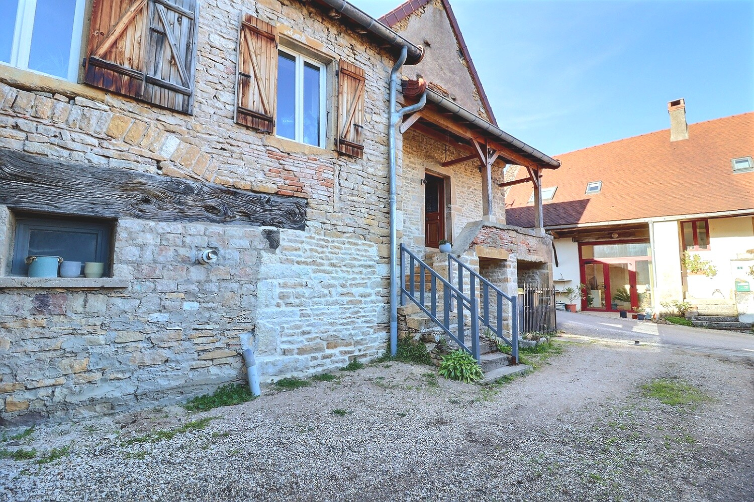 Située dans un environnement de hameau, la maison offre un cadre de vie paisible avec une proximité naturelle entre les habitations.