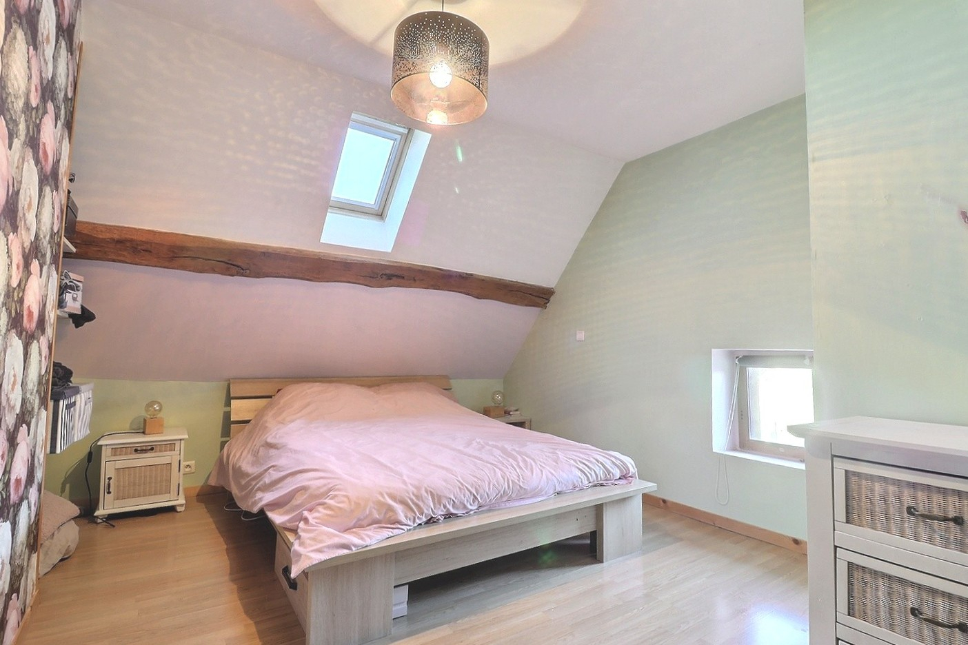 À l'étage, un espace sous combles aménagé propose une chambre avec sa salle d'eau, idéal pour un adolescent, le télétravail ou recevoir.