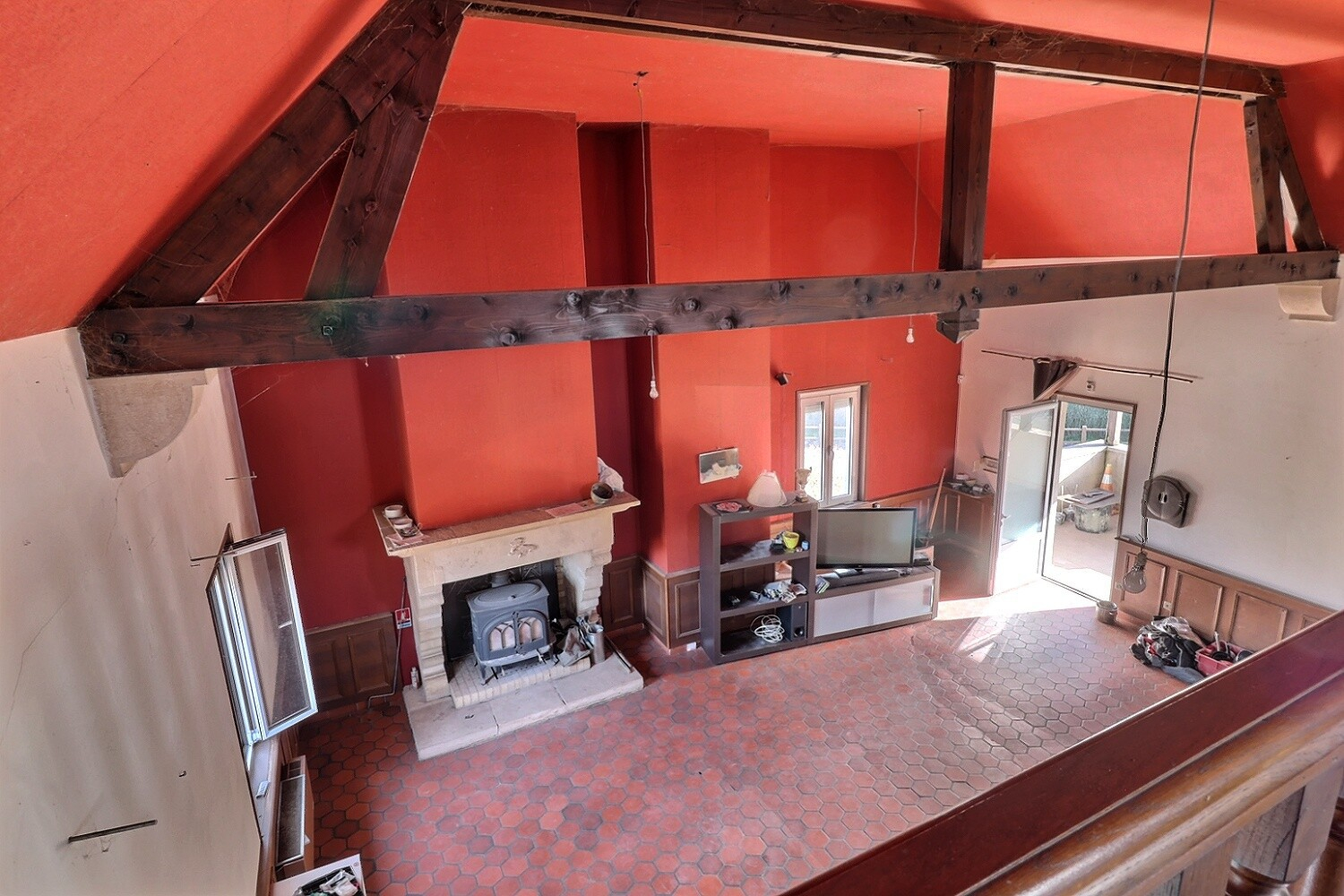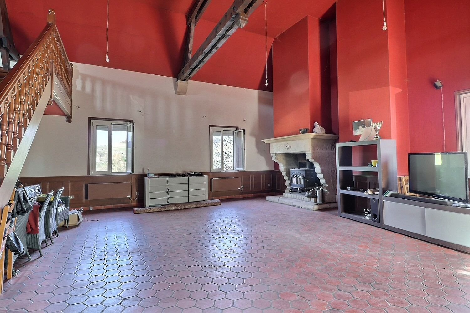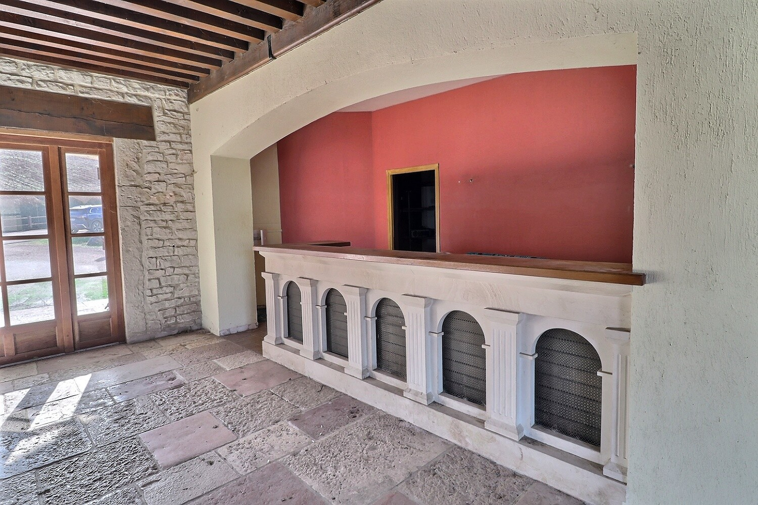 Le bien se compose, au rez-de-chaussée, d'une vaste pièce de réception de plain-pied, chaleureuse et pleine de caractère, agrémentée d'une très belle cheminée. À l'étage, une seconde grande pièce s'ouvre sur une mezzanine ainsi qu'une terrasse couverte, offrant des espaces supplémentaires idéaux pour accueillir de la clientèle dans un cadre convivial.