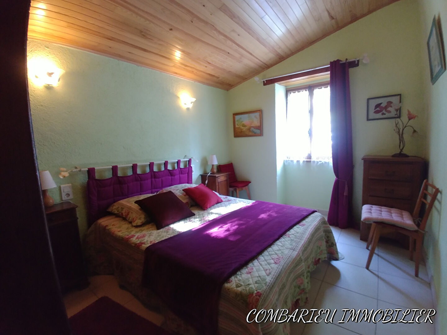 A l'étage, une pièce mansardée aménagée en salon, pouvant être transformée en chambre.
