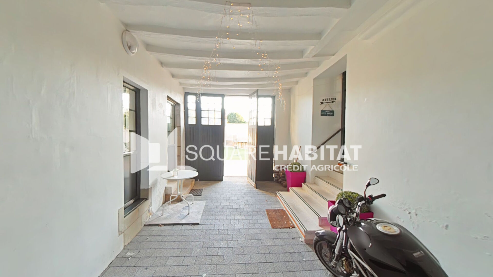 Sous le porche à droite, une pièce chauffée de 42m avec WC point d'eau pouvant faire office d'un futur studio ou bien un local pour une activité indépendante.