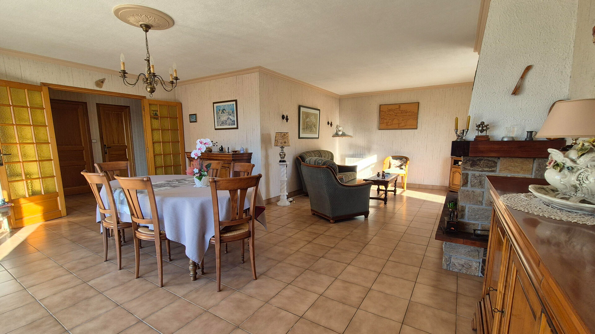 D'une surface habitable d'environ 130 m², elle dispose d'une belle pièce de vie lumineuse, exposée plein sud et agrémentée d'une cheminée, ainsi qu'une cuisine indépendante.