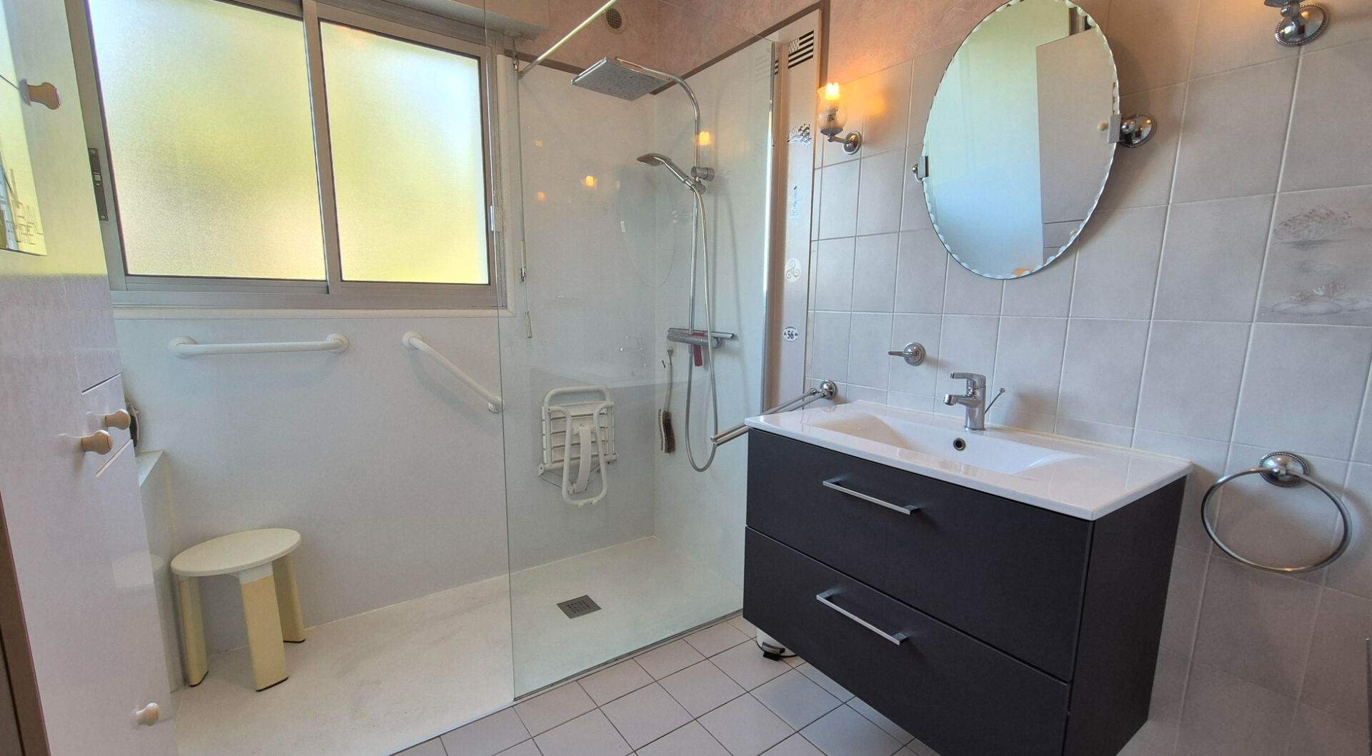 Le rez-de-chaussée, idéal pour une vie de plain-pied, comprend une chambre, une salle d'eau, des WC et une pièce pouvant servir de bureau, d'arrière-cuisine ou de lingerie.