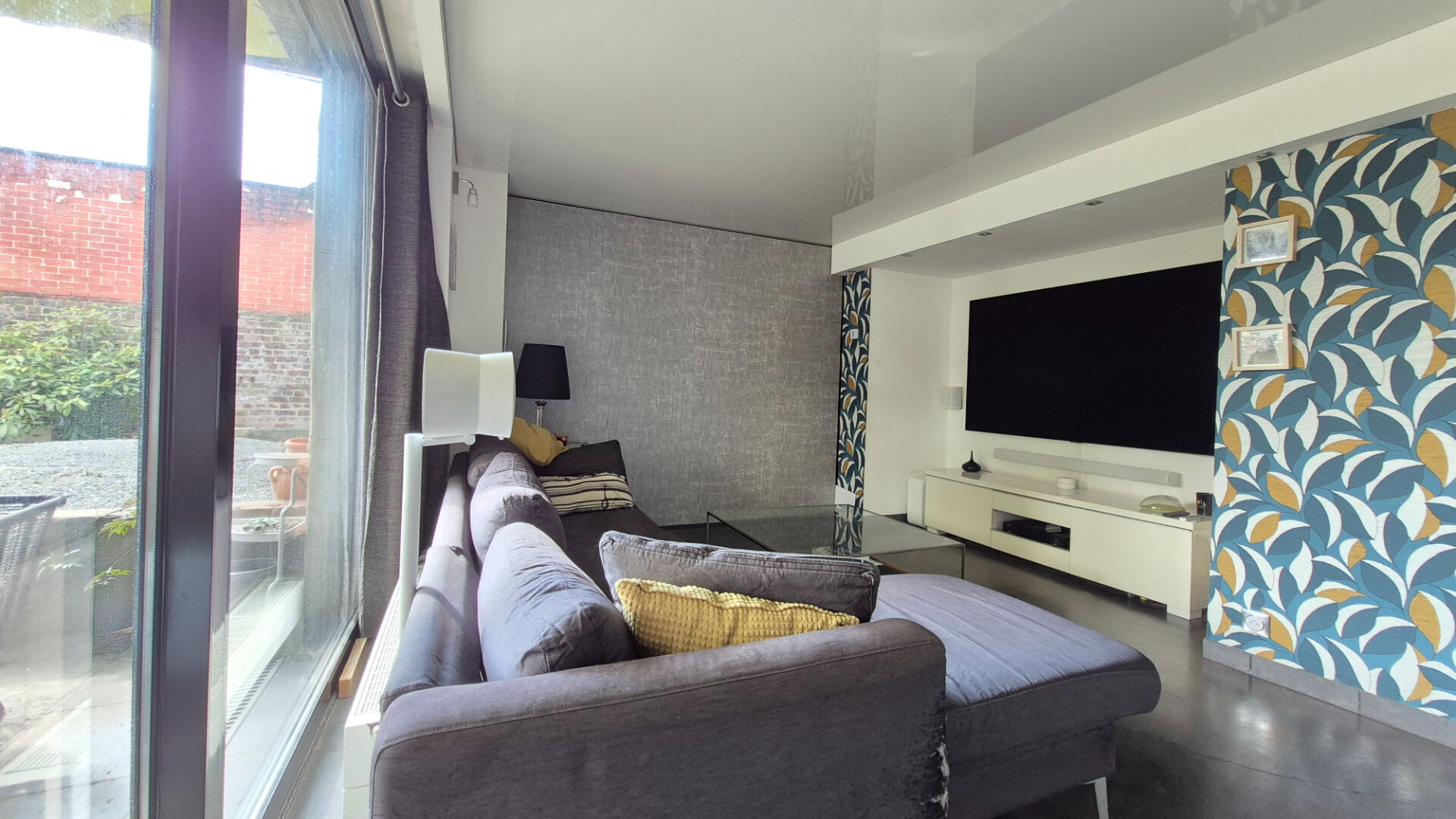 un très grand salon/séjour lumineux avec cuisine ouverte,