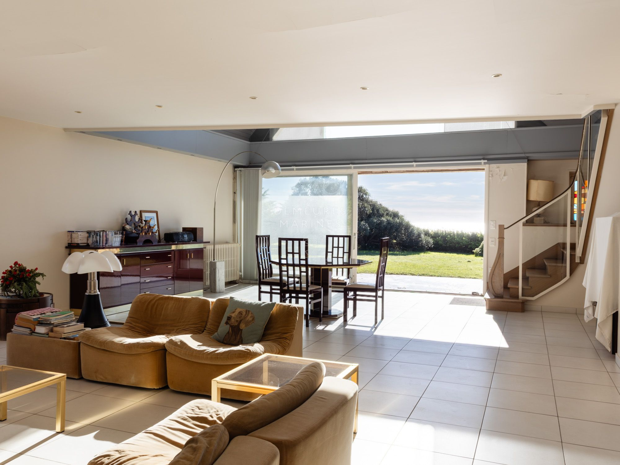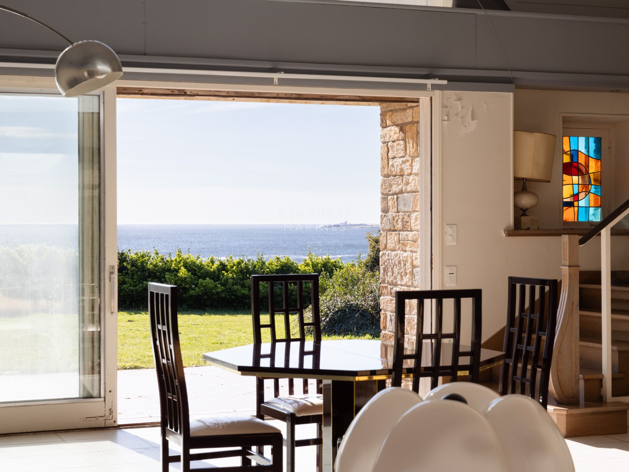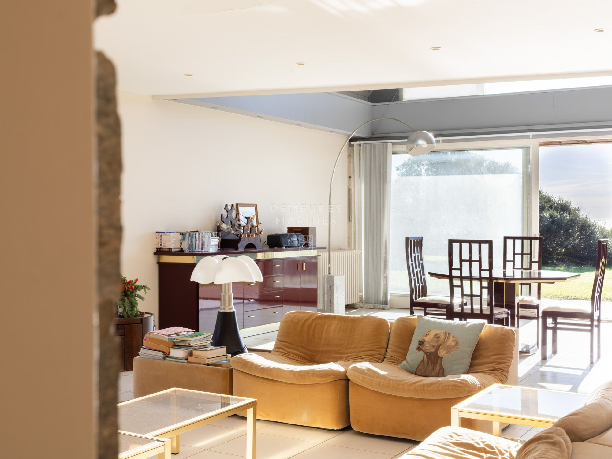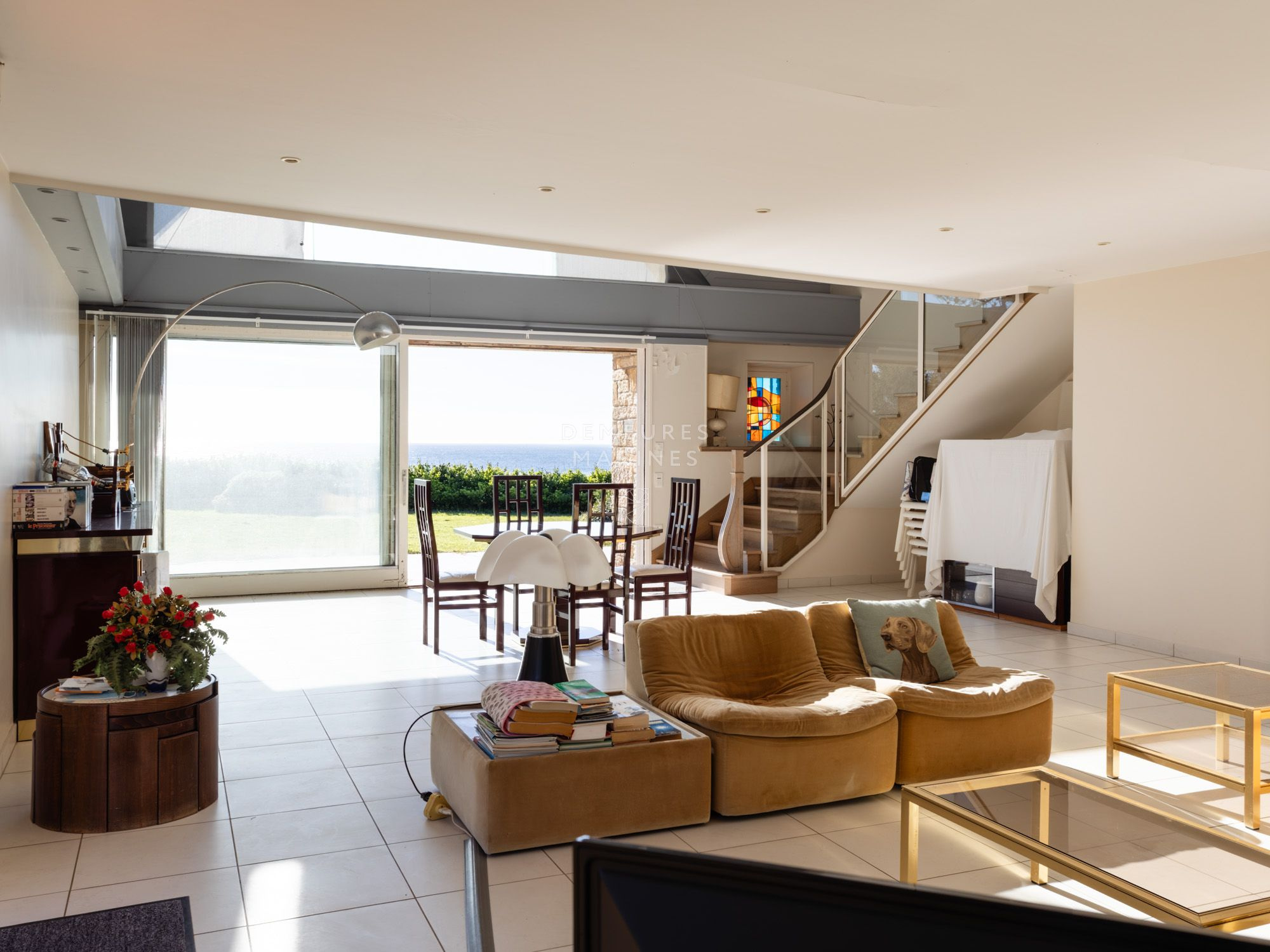 Face à l'océan, cette propriété familiale d'environ 388 m2, dont 331 M2 pour la maison principale, se déploie sur un terrain de plus de 4 000 m2. Ardoise et granit dessinent une architecture aux lignes intemporelles, pensée pour dialoguer avec le paysage. Ses volumes généreux et ses larges ouvertures laissent entrer la lumière et guident instinctivement les regards vers l'horizon.