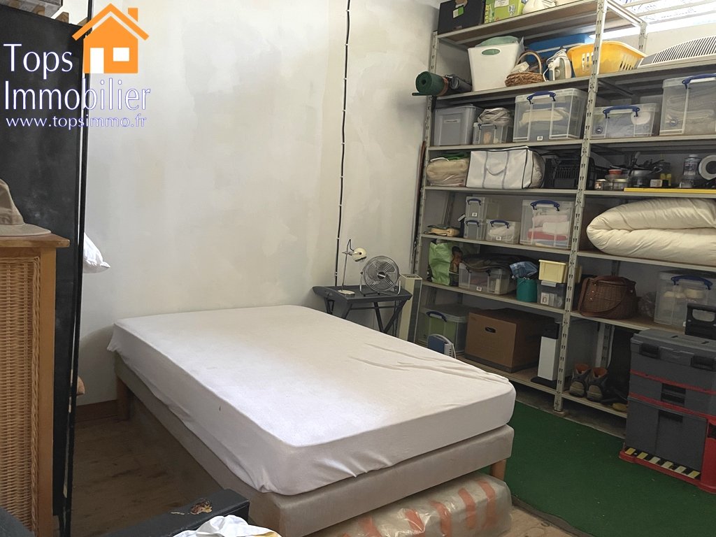 La partie habitable est au premier étage, en rez de jardin.Il y a la cuisine de 15m2, le salon de 18m2, la chambre de 13m2 et la salle d'eau de 4m2. Au sous-sol, au niveau de la rue il y a 2 caves de 13 et 28m2.
