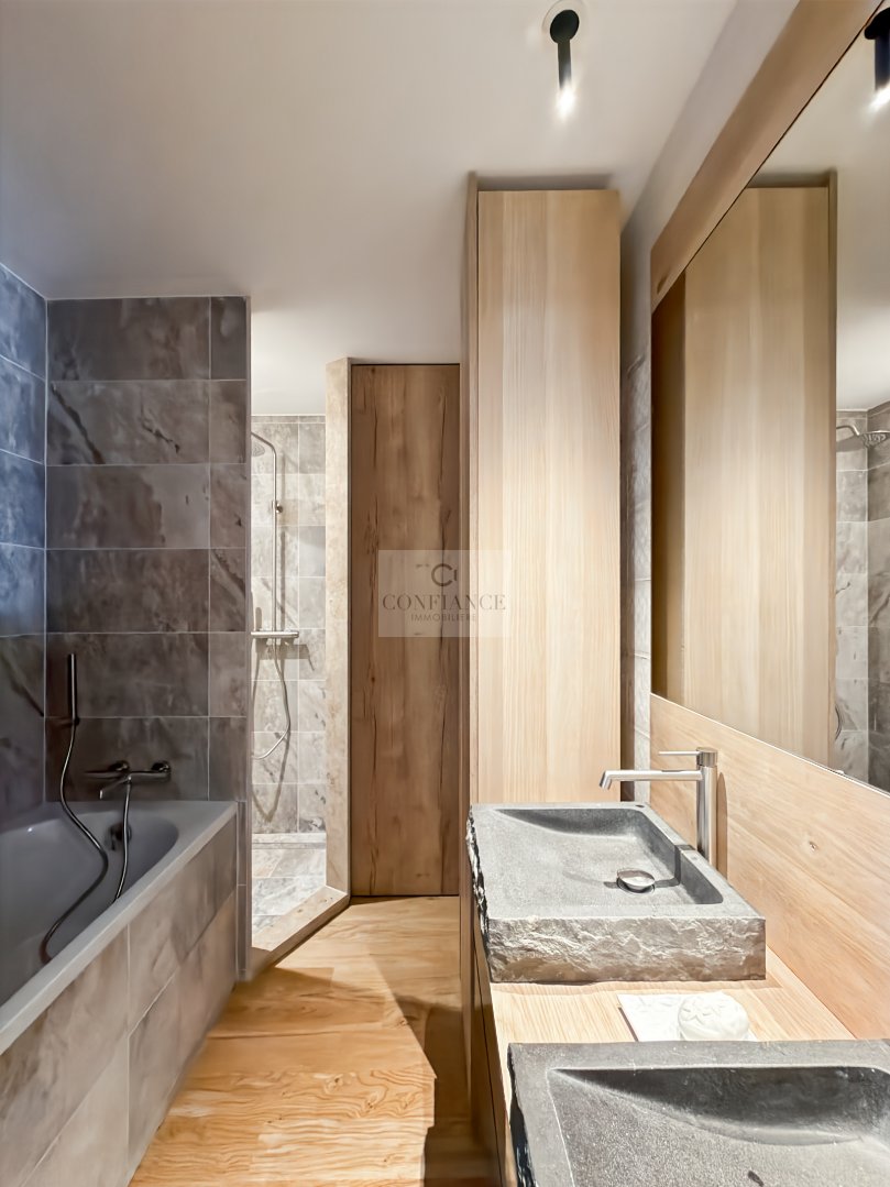 Rénové avec soin dans un esprit chalet contemporain, ce bien allie parfaitement authenticité et modernité. Il offre une cuisine moderne entièrement équipée, aux finitions élégantes et aux matériaux de qualité, ouverte sur un espace de vie chaleureux et lumineux.