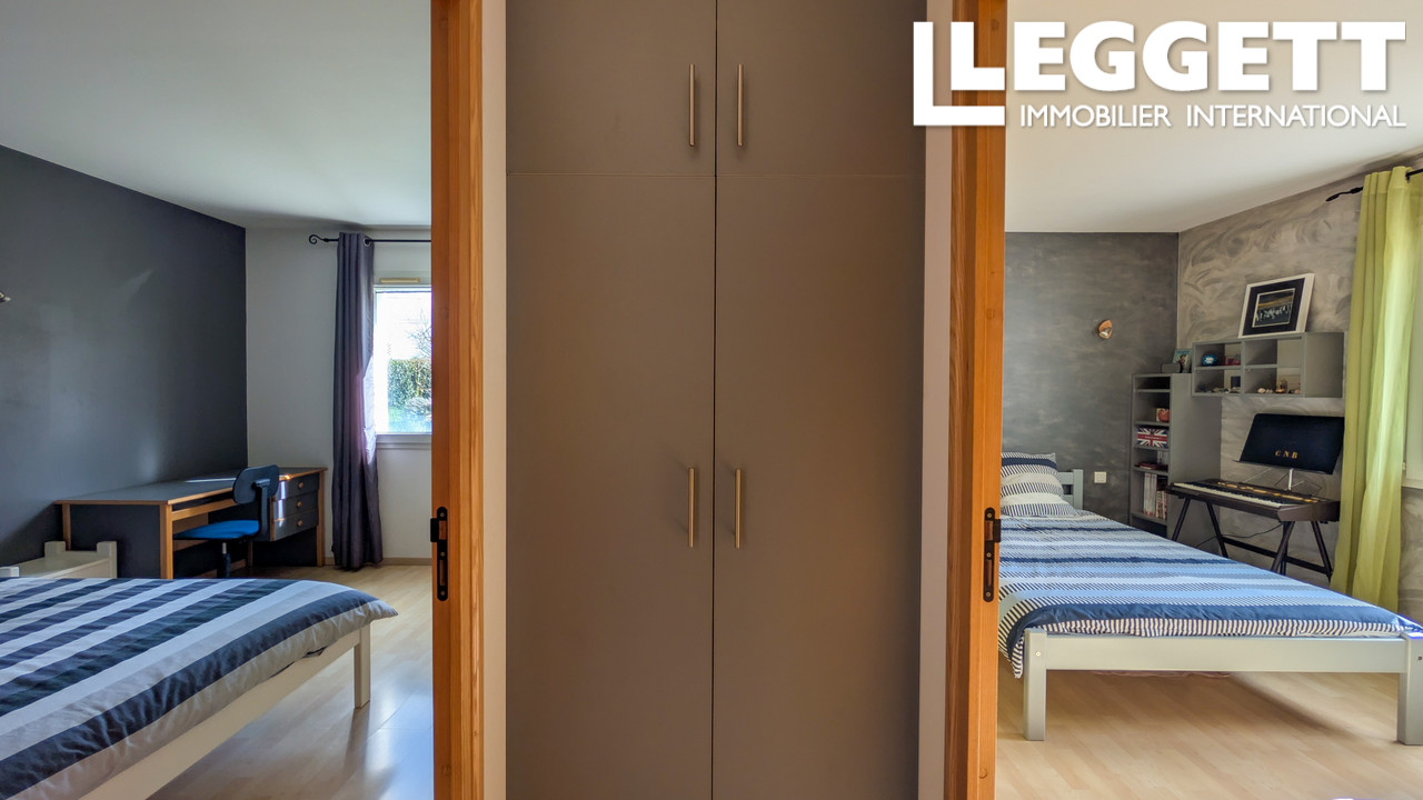 L'agencement comprend 3 chambres et un bureau, tous avec placards, une salle de bain et 2 WC indépendants. La cuisine ouverte communique avec une arrière-cuisine/buanderie donnant accès directement au double garage.