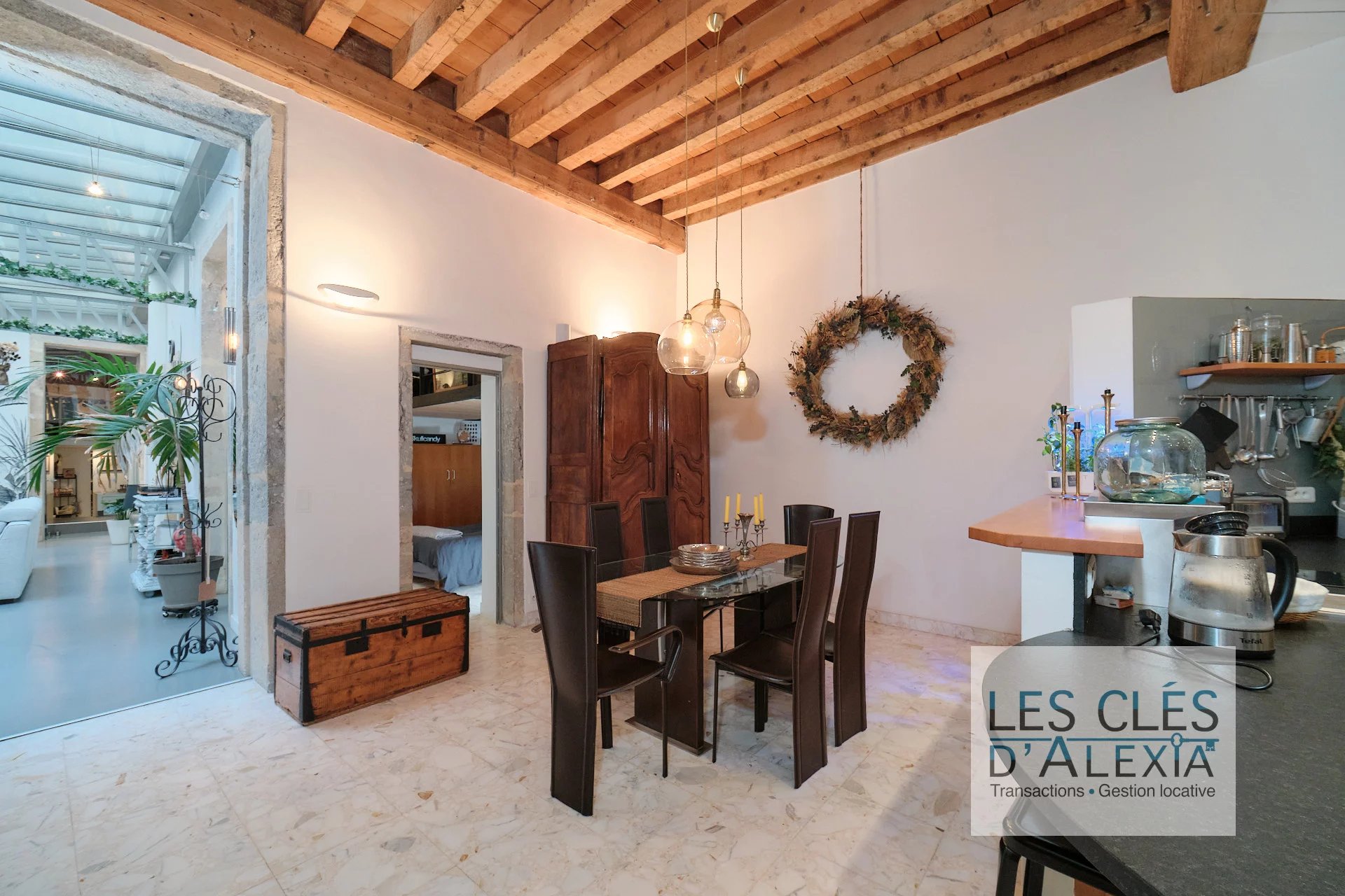 La rénovation met en valeur le caractère du lieu en associant pierre de taille, poutres apparentes, volumes généreux et lignes contemporaines, dans un véritable esprit atelier / loft.
