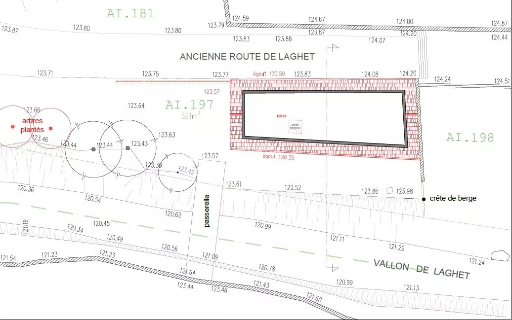 EXCLUSIVITE - LA TRINITE - Route de Laghet - Terrain plat constructible en zone commerciale d'une surface d'environ 321m². Emprise au sol de 50% - Projet d'un bâtiment de 170 M² sur deux niveau à usage de bureaux. Viabilité à proximité. A VOIR ABSOLUMENT!