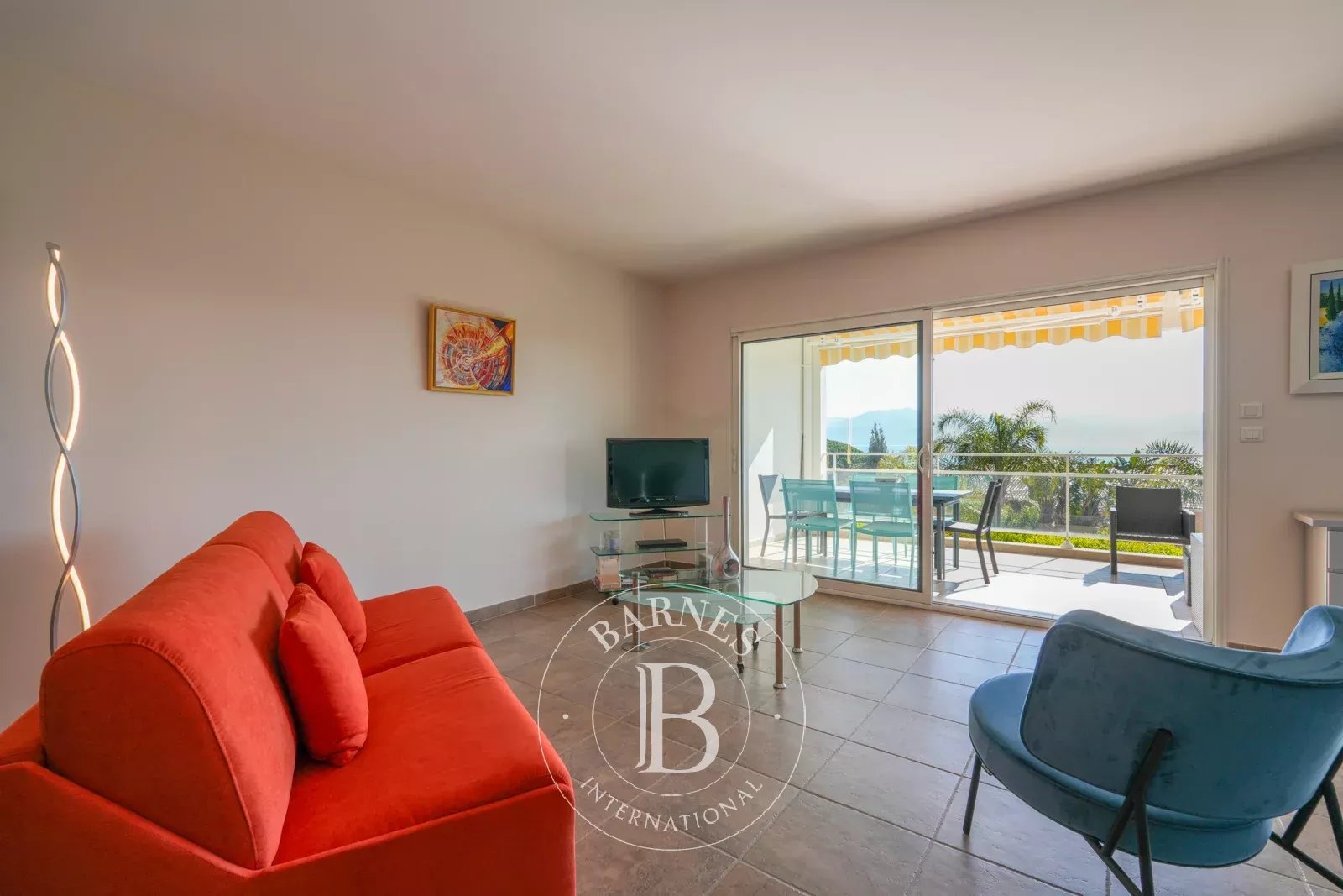 D’environ 105 m², il se compose d’un séjour lumineux ouvrant sur une large terrasse face à la Méditerranée. La cuisine, aménagée et équipée, complète l’espace de vie.