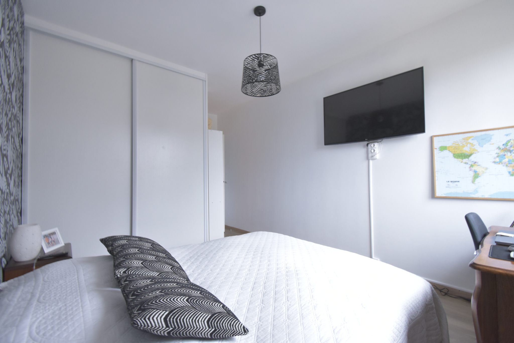 11648 - Résidence du Lac, en rez-de-chaussée surélevé, appartement entièrement rénové de type 3 avec balcon et loggia exposés Sud Ouest composé : grande entrée avec placard vestiaire, cuisine ouverte aménagée et entièrement équipée ouvert la salle à manger et le salon, deux belles chambres avec placards, salle de douche, toilettes séparés. Pompe à chaleur, balcon et cave. Copro de 24 lots principaux - Charges moy.copro./an de 2945 EUR