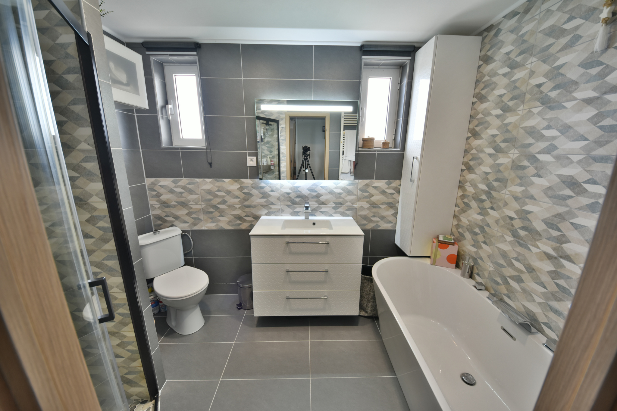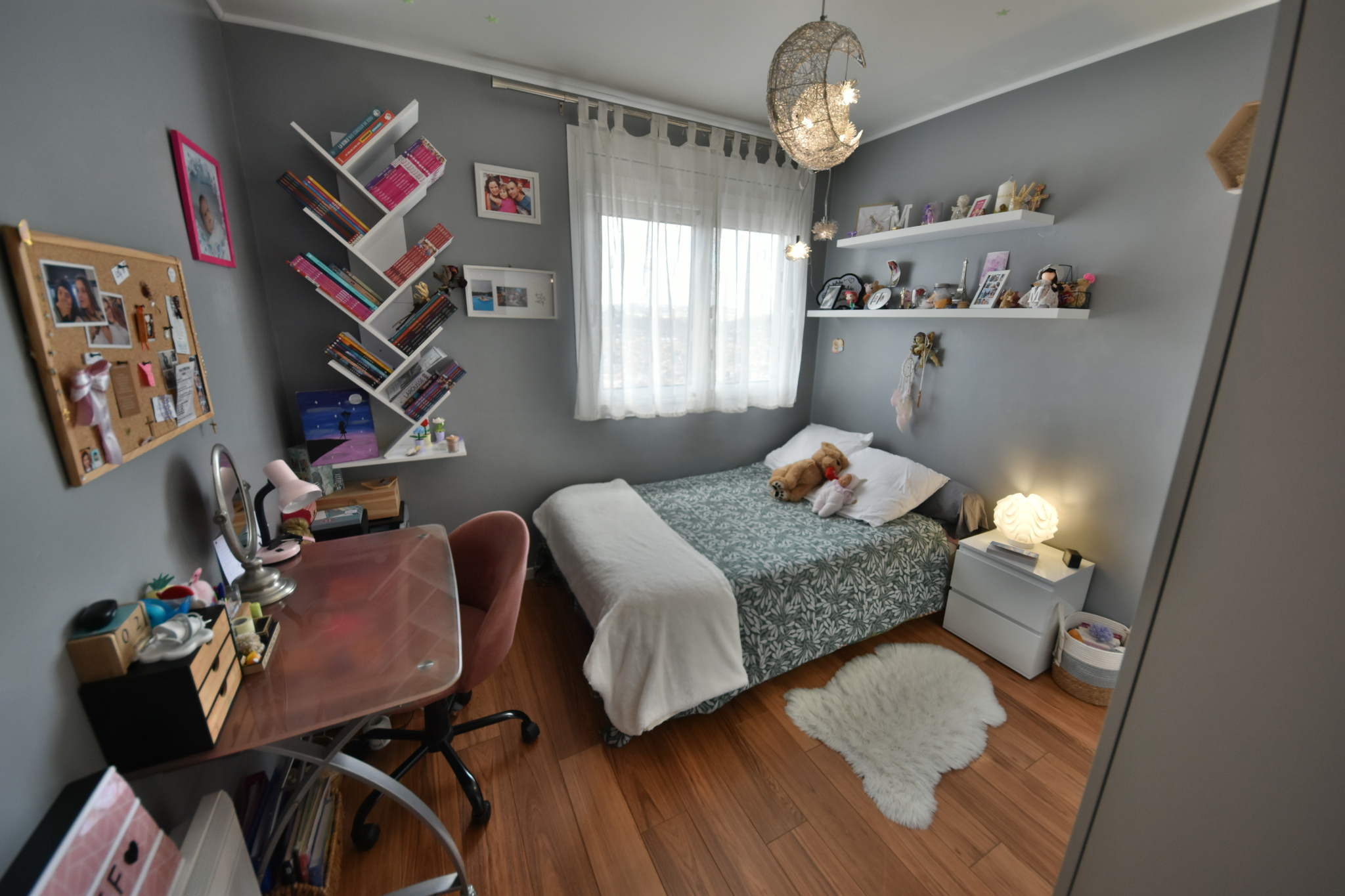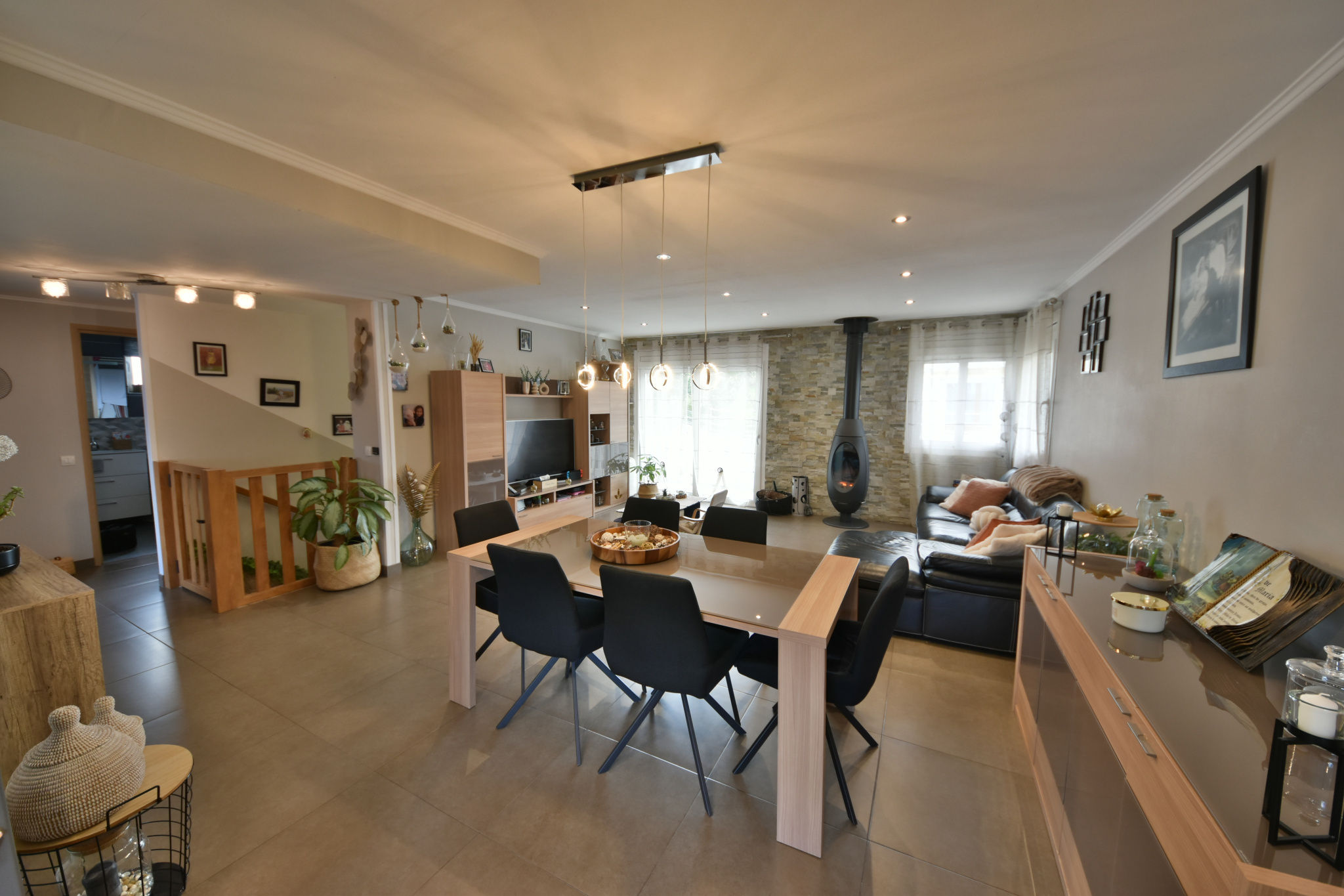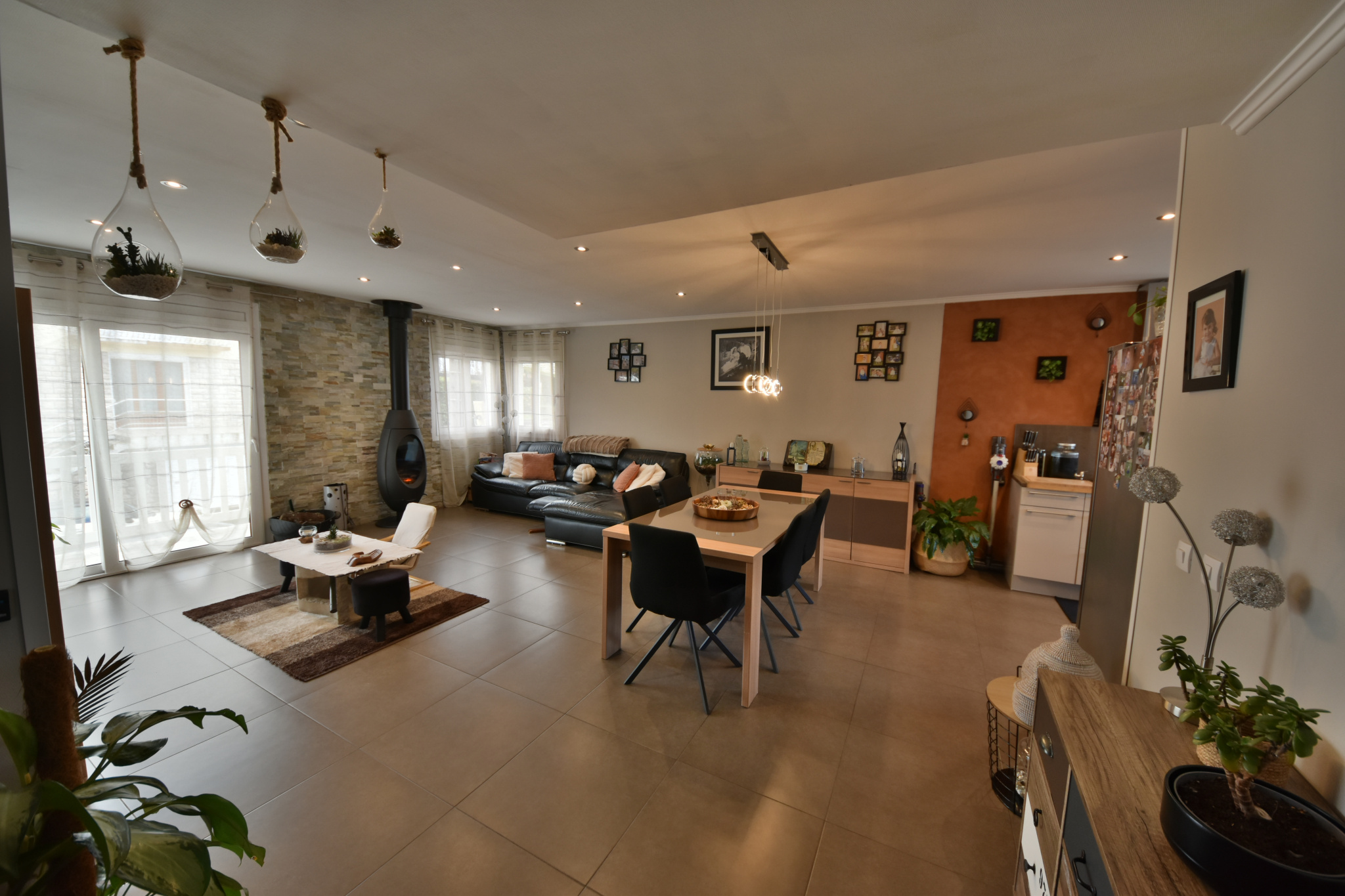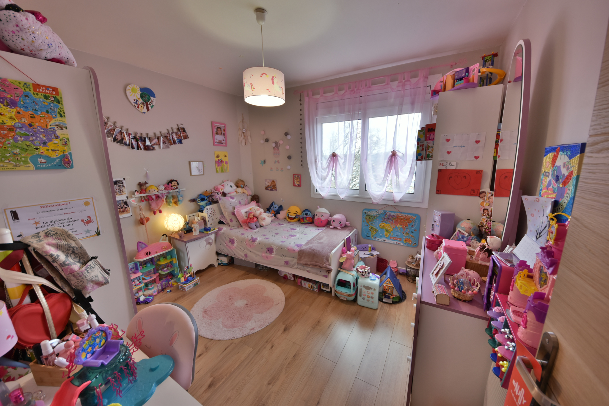 Au premiere étage un appartement T4 : un salon séjour, une cuisine ouverte, 3 chambres, une salle de bains, un wc et une salle de jeux.