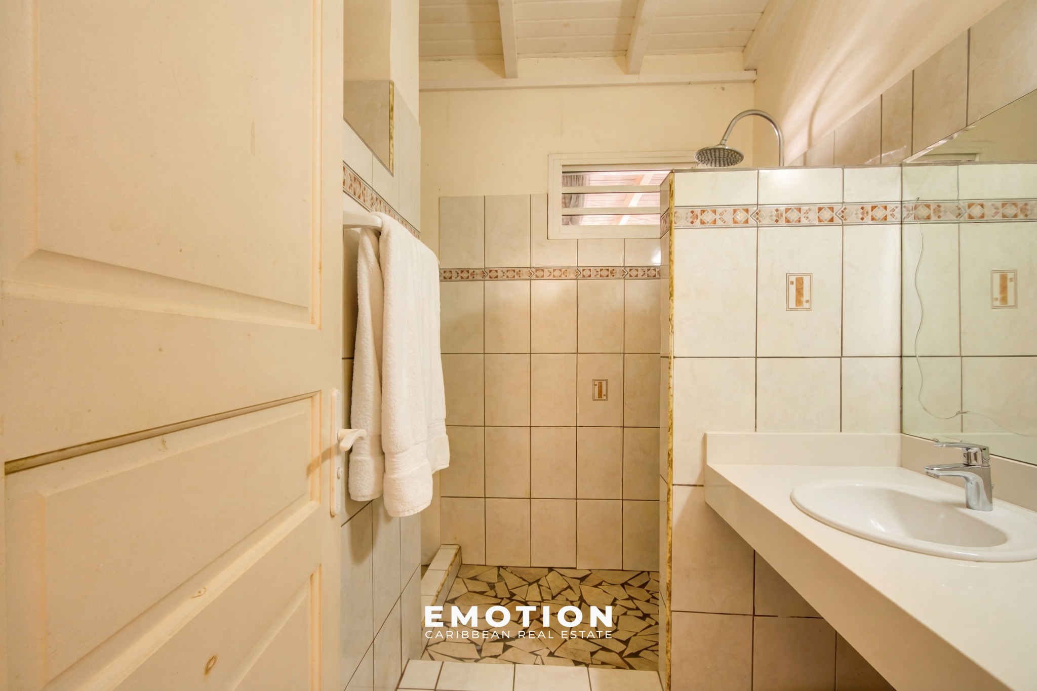 Maison T3 - 90 m2 + 37 m2 de terrasses couvertes + Garage 47 m2 Le Gosier - Belle-Plaine Nouveau mandat exclusif Le Cabinet Emotion vous propose à la vente, dans une maison individuelle de plain-pied, un nouveau bien sur le secteur de Belle-Plaine, au Gosier, à seulement quelques minutes à pied de la plage de la Datcha, à proximité immédiate des commerces, écoles et à environ 15 minutes de Jarry.