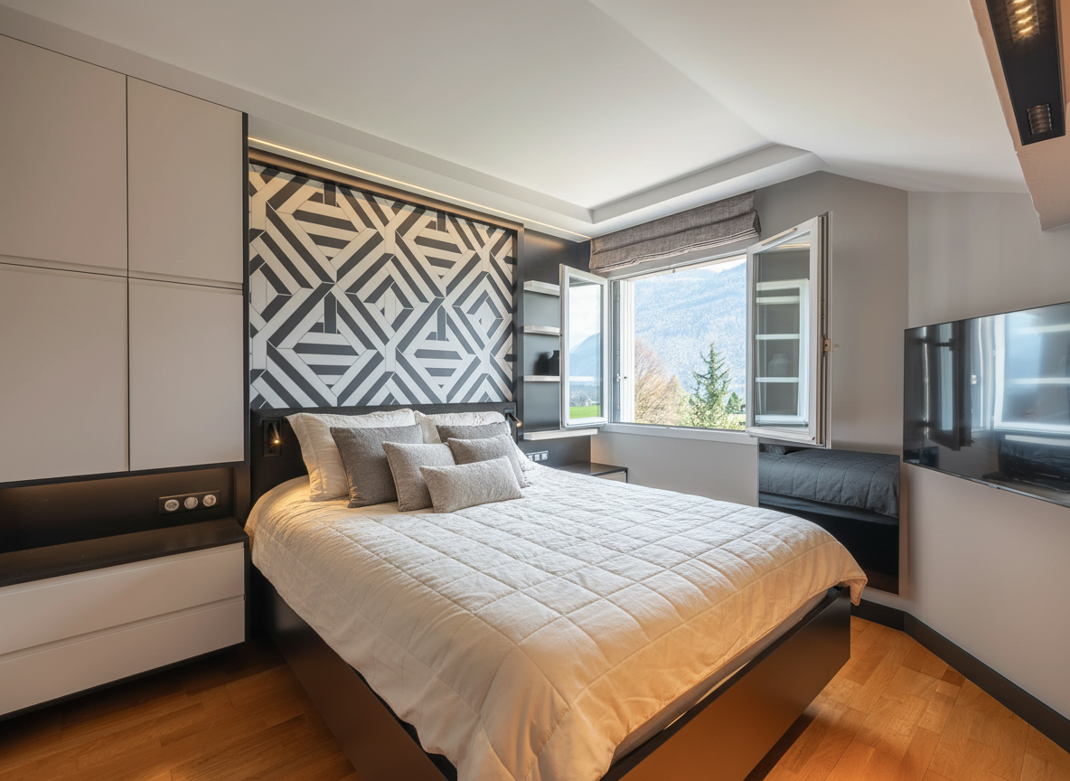 De nombreux aménagements sur mesure optimisent les rangements et les volumes.