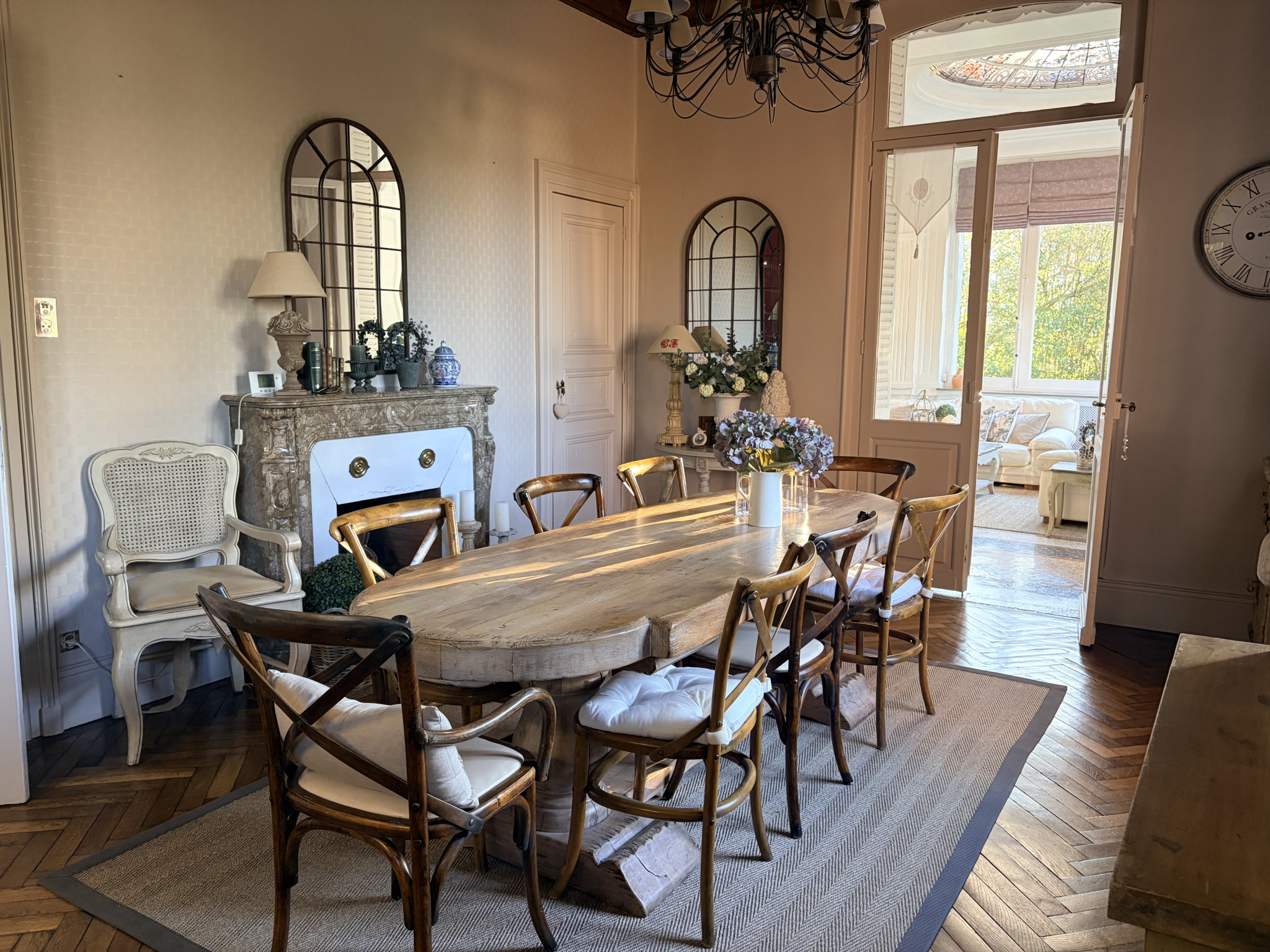 Maison de caractère rénovée avec goût un véritable cocon familial Dès l'entrée, le charme opère : vous vous sentez immédiatement comme chez vous, enveloppé d'une atmosphère douce et apaisante. Chaque pièce invite à la détente et au partage. Cette demeure offre de beaux volumes et une rénovation soignée : un grand salon lumineux au style chic, une salle à manger habillée de superbes boiseries au plafond, deux cuisines fonctionnelles, ainsi que cinq chambres spacieuses pour accueillir toute la famille. Le cadre environnant, paisible et verdoyant, complète parfaitement ce lieu hors du commun. Prenez le temps de visiter... vous serez conquis.
