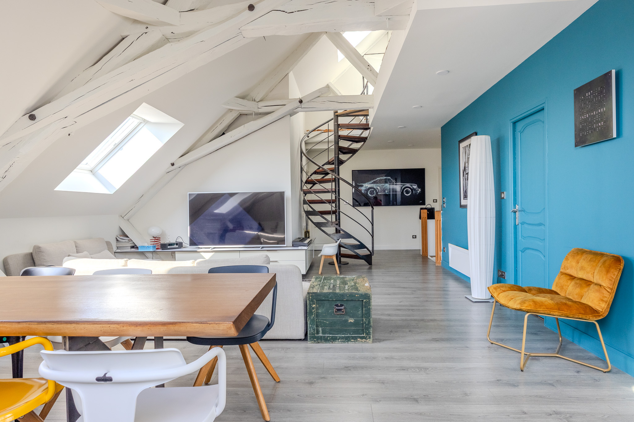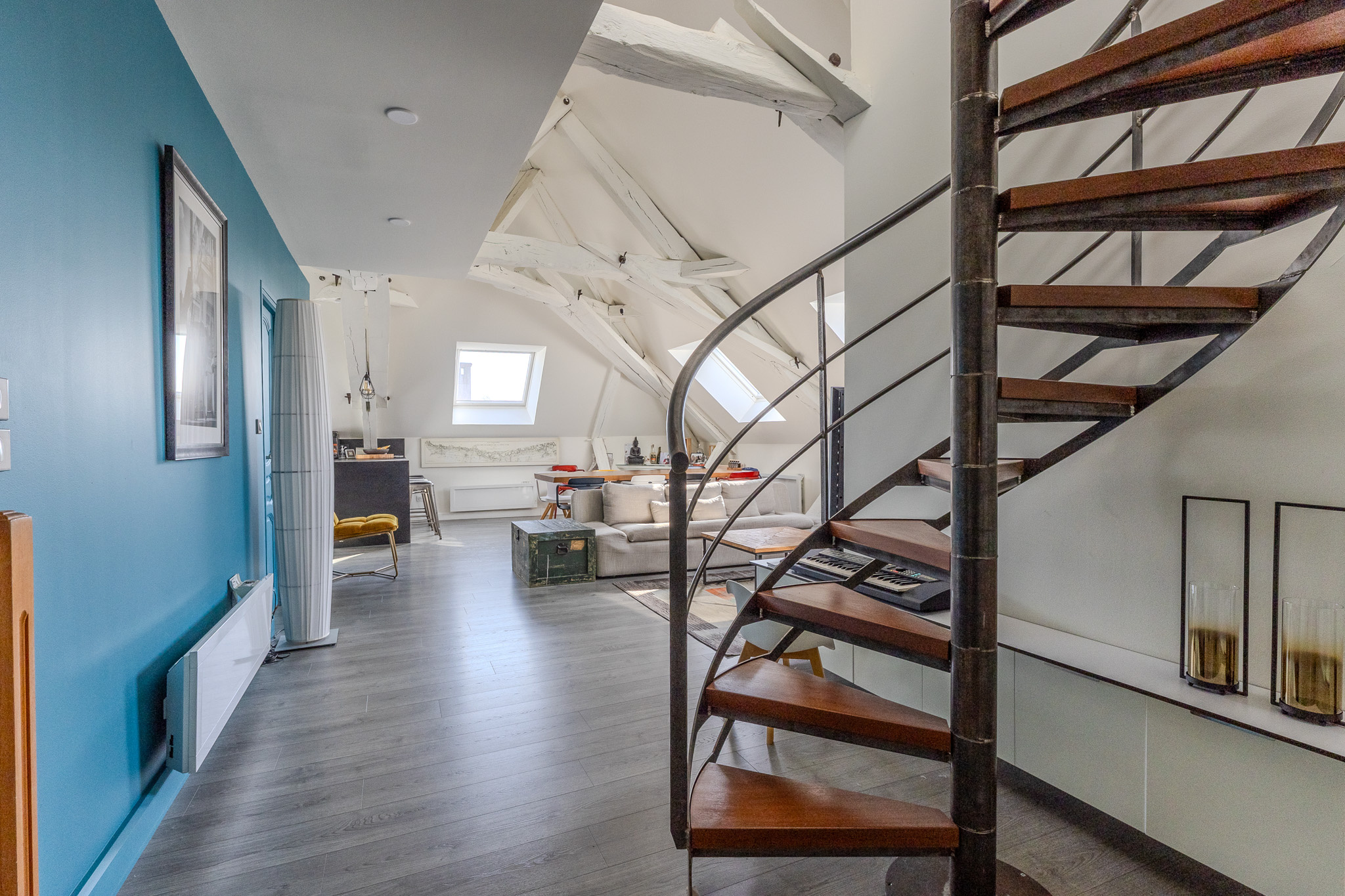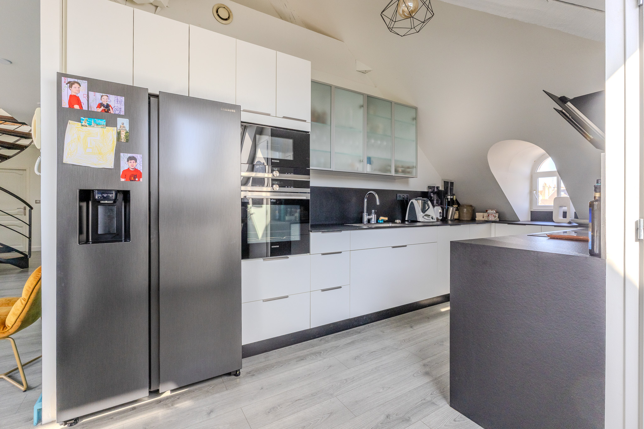 Laissez-vous séduire par ce magnifique duplex baigné de lumière, offrant une vaste pièce de vie conviviale avec cuisine aménagée et entièrement équipée.