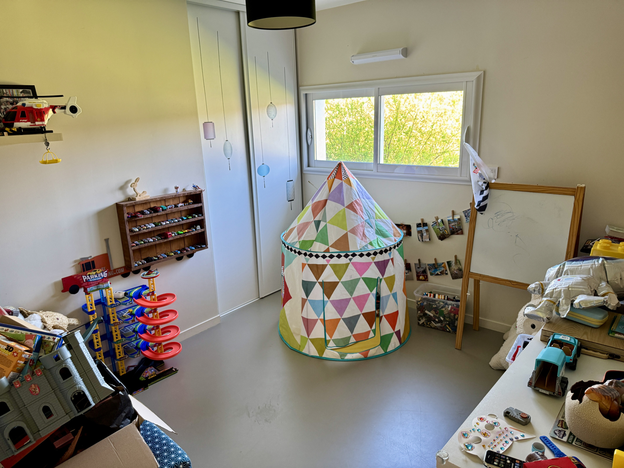 Garage attenant de 28 m2 avec porte motorisée.
