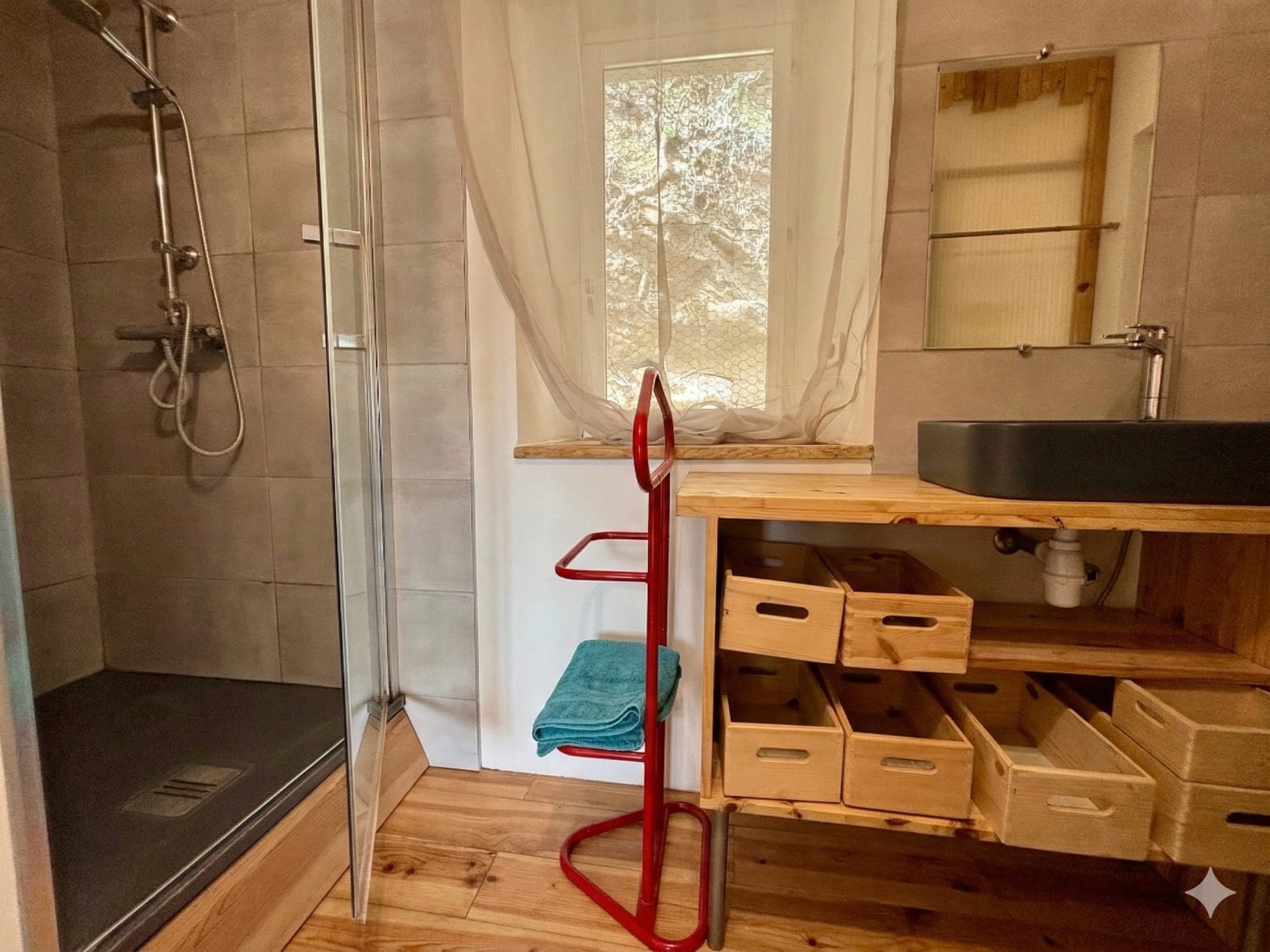 - Au rez-de-chaussée : une spacieuse pièce de vie avec sa cuisine ouverte.