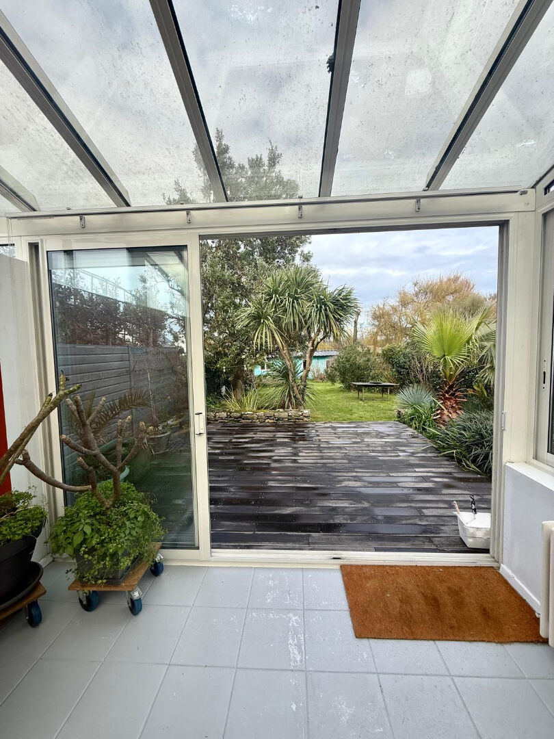 Elle se compose au rez-de-chaussée d'une entrée ouvrant sur un séjour avec cuisine ouverte aménagée et équipée, d'une grande véranda lumineuse, d'une chambre, d'une salle d'eau, d'un WC indépendant ainsi que d'un bureau.