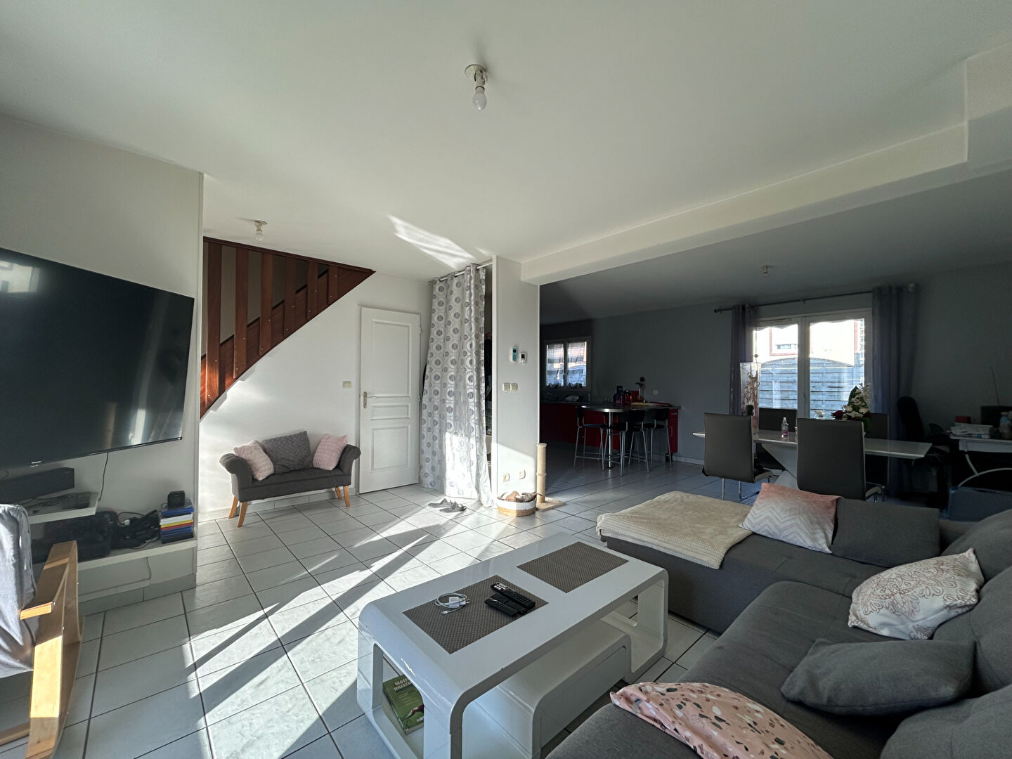 Au rez-de-chaussée, une belle pièce de vie baignée de lumière grâce à son exposition Est/Ouest. Elle accueille une cuisine ouverte, aménagée et moderne, parfaite pour partager de bons moments au quotidien.