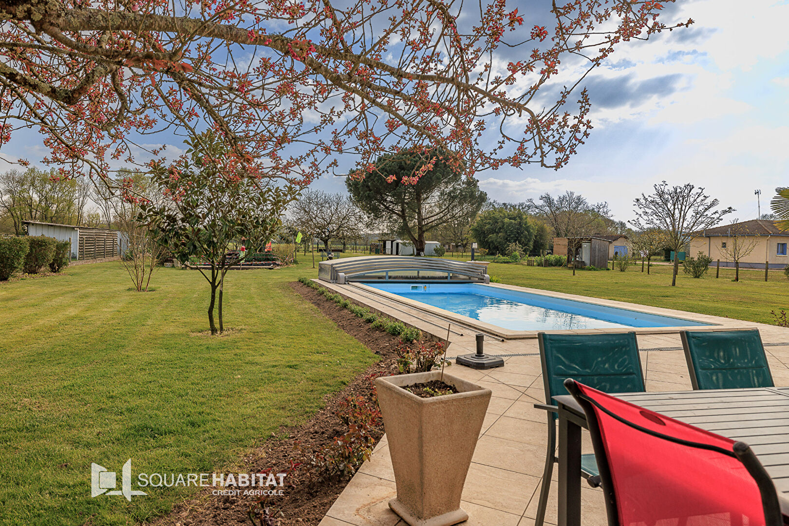 Ouverte sur la nature, cette maison familiale possède tout le confort et les volumes pour accueillir une famille en quête d'espace, et de calme : 4 chambres dont une suite parentale, un bureau, un grand séjour lumineux climatisé avec cheminée insert, plusieurs garages, grande terrasse avec piscine couverte et beau jardin clos et arboré.