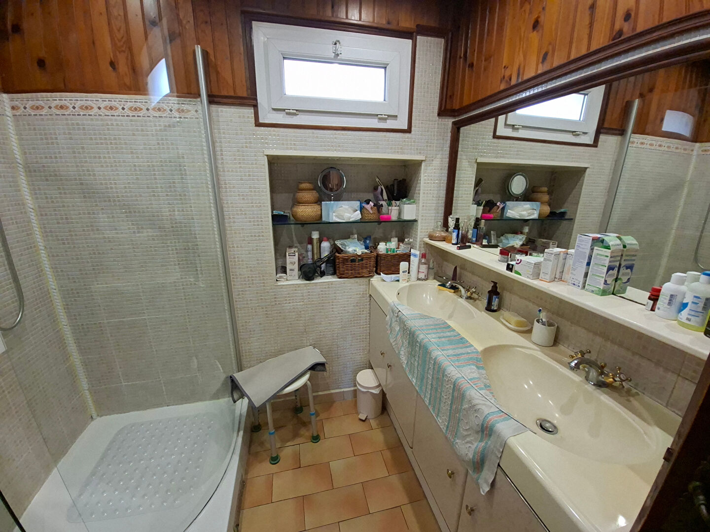 -au premier étage un appartement T3 de 96m², libre de toute occupation, comprenant une entrée, un séjour ouvert sur une terrasse, une salle à manger, une cuisine séparée, une chambre, une salle d'eau et des WC indépendants. Un esccalier interieur dessert en RDC un petit salon, une chambre avec salle d'eau et WC, une petite cuisine donnant sur les extérieurs, jardin et terrasse avec cabanon, double vitrage PVC à isolation renforcée, climatisation.