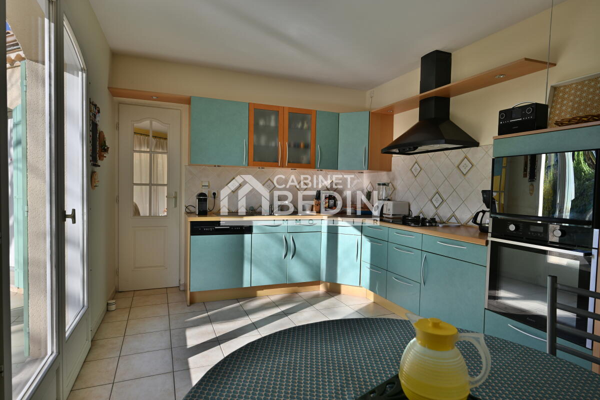 La cuisine dînatoire avec cellier attenant est parfaite pour des repas en famille.