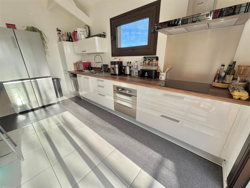 D'une surface habitable de 145m², cette propriété se compose d'une entrée, d'un espace de vie de 50m² avec cuisine ouverte (aménagée et équipée, installée en 2017) offrant un accès direct aux terrasses et à un espace piscine.