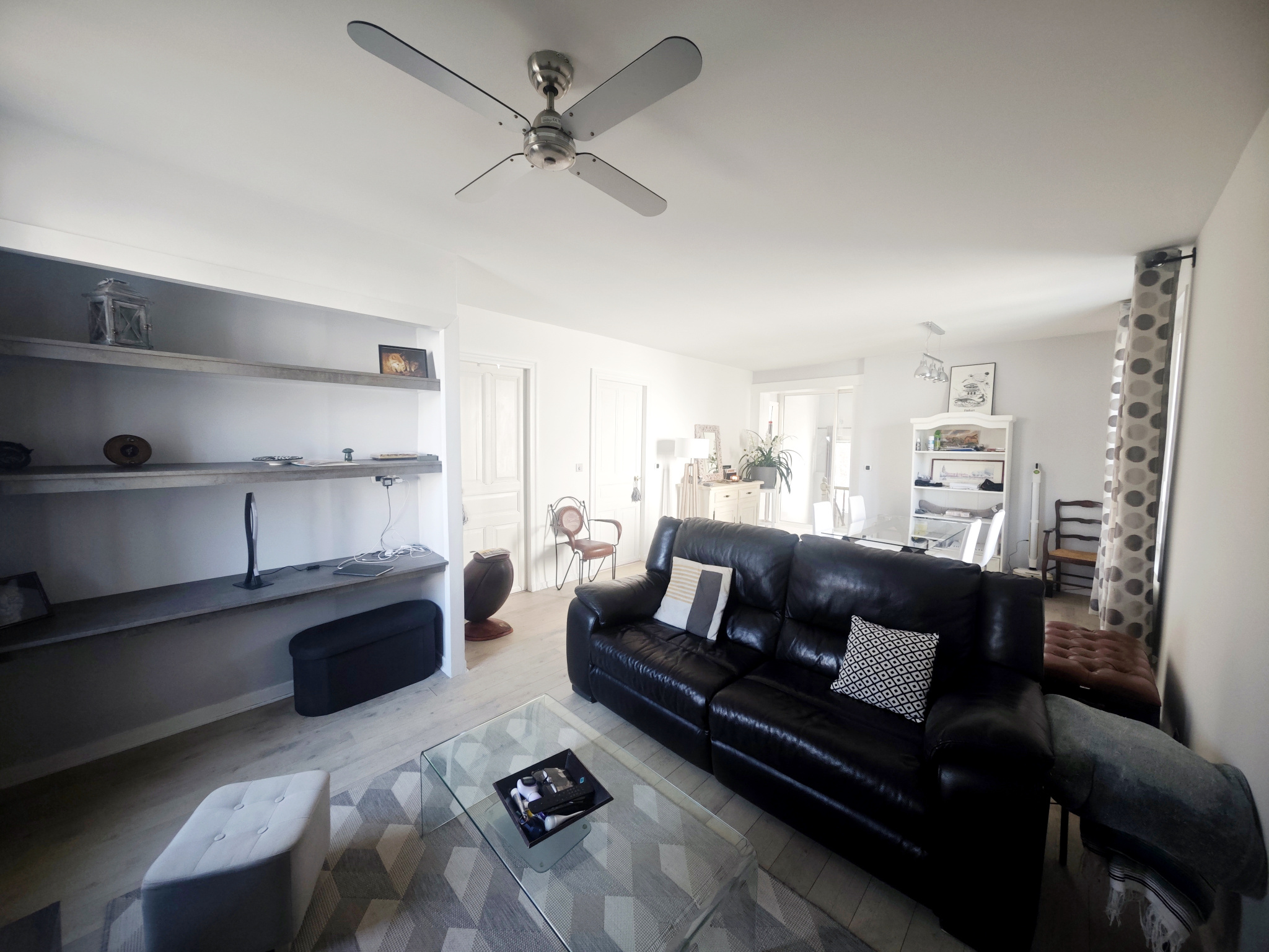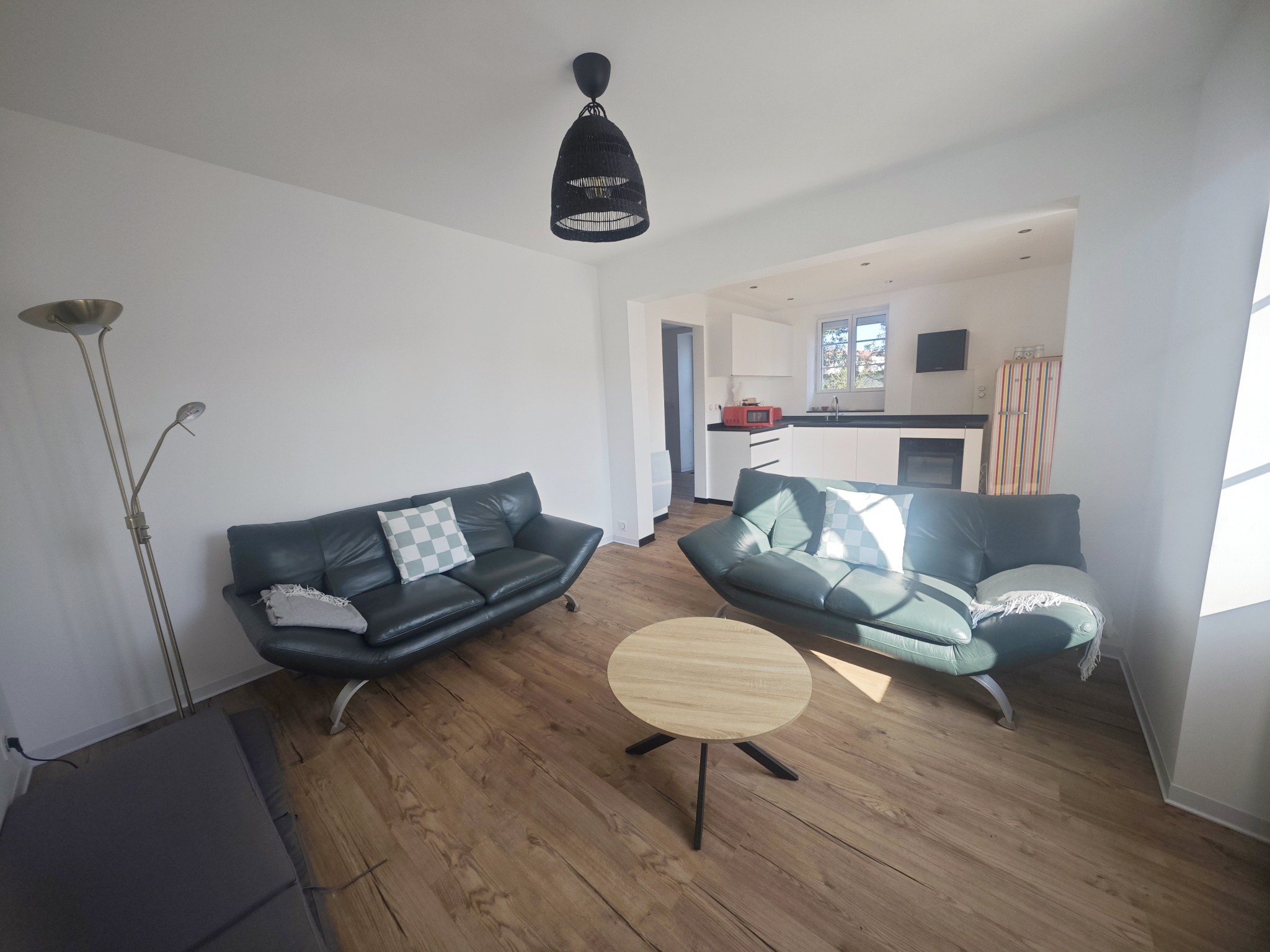 L'Appartement Principal (T3 d'env. 80 m2) : Situé à l'étage, il vous accueille avec une pièce de vie lumineuse, une cuisine équipée moderne, deux belles chambres et une salle d'eau avec WC. Le charme de l'ancien opère, sublimé par une rénovation actuelle.