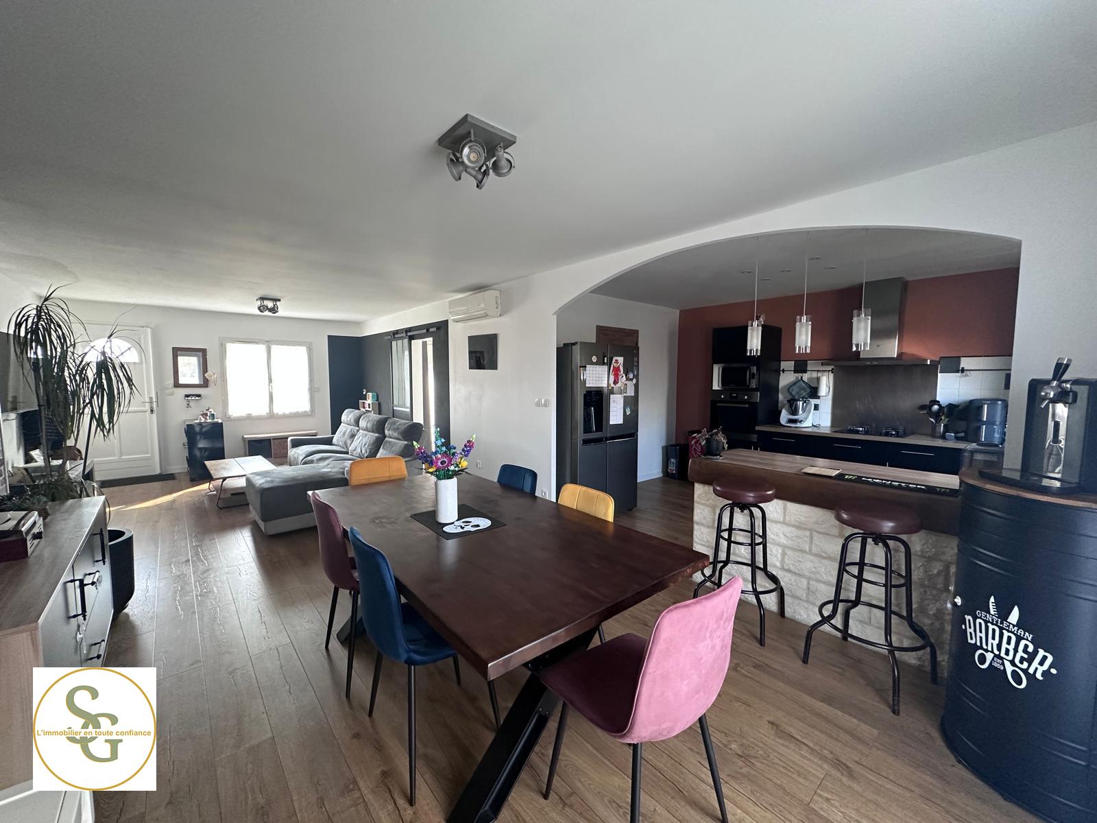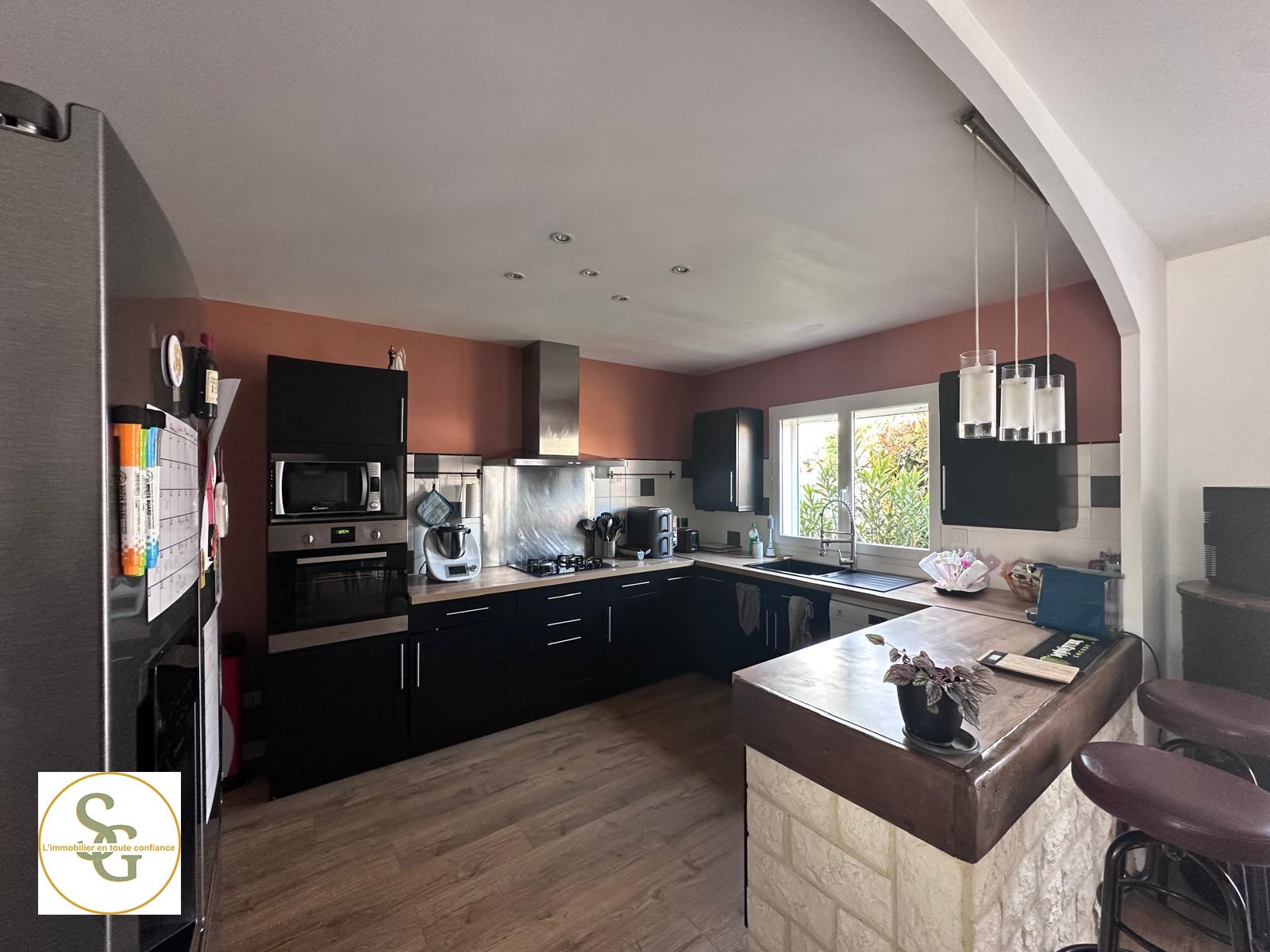 La pièce de vie respire, la cuisine moderne s'ouvre naturellement sur le salon-séjour (oui, on peut cuisiner sans tourner le dos à ses invités), et l'ensemble donne envie de prolonger les soirées... même quand on avait dit "juste un café".