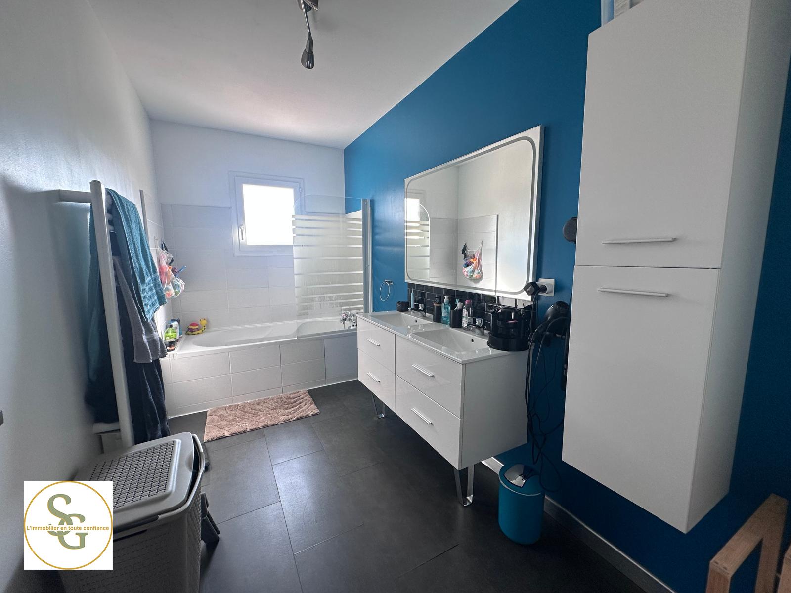 Côté nuit, quatre chambres pour loger enfants, amis, télétravail ou collection de vêtements, une salle de bain fonctionnelle, et un cellier qui évite de transformer la cuisine en entrepôt logistique.