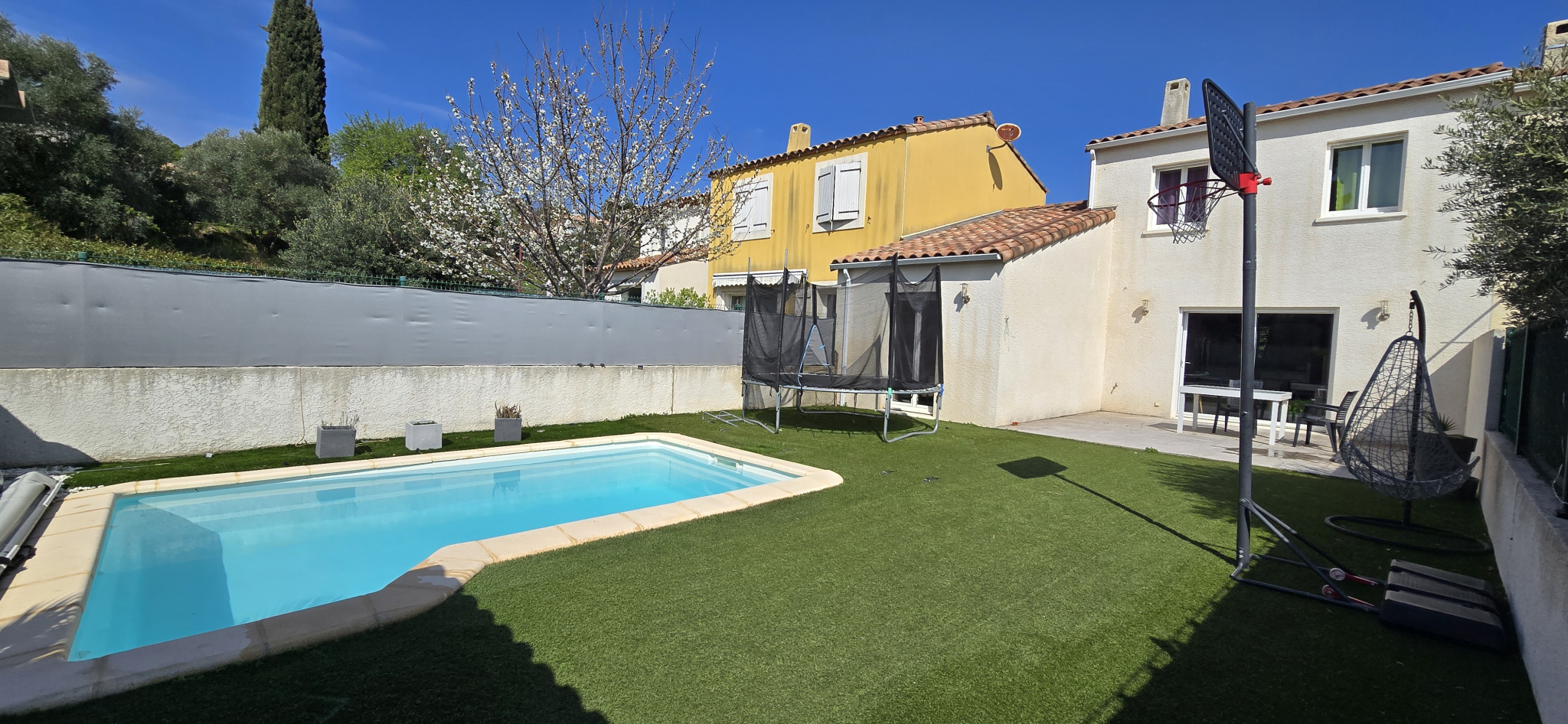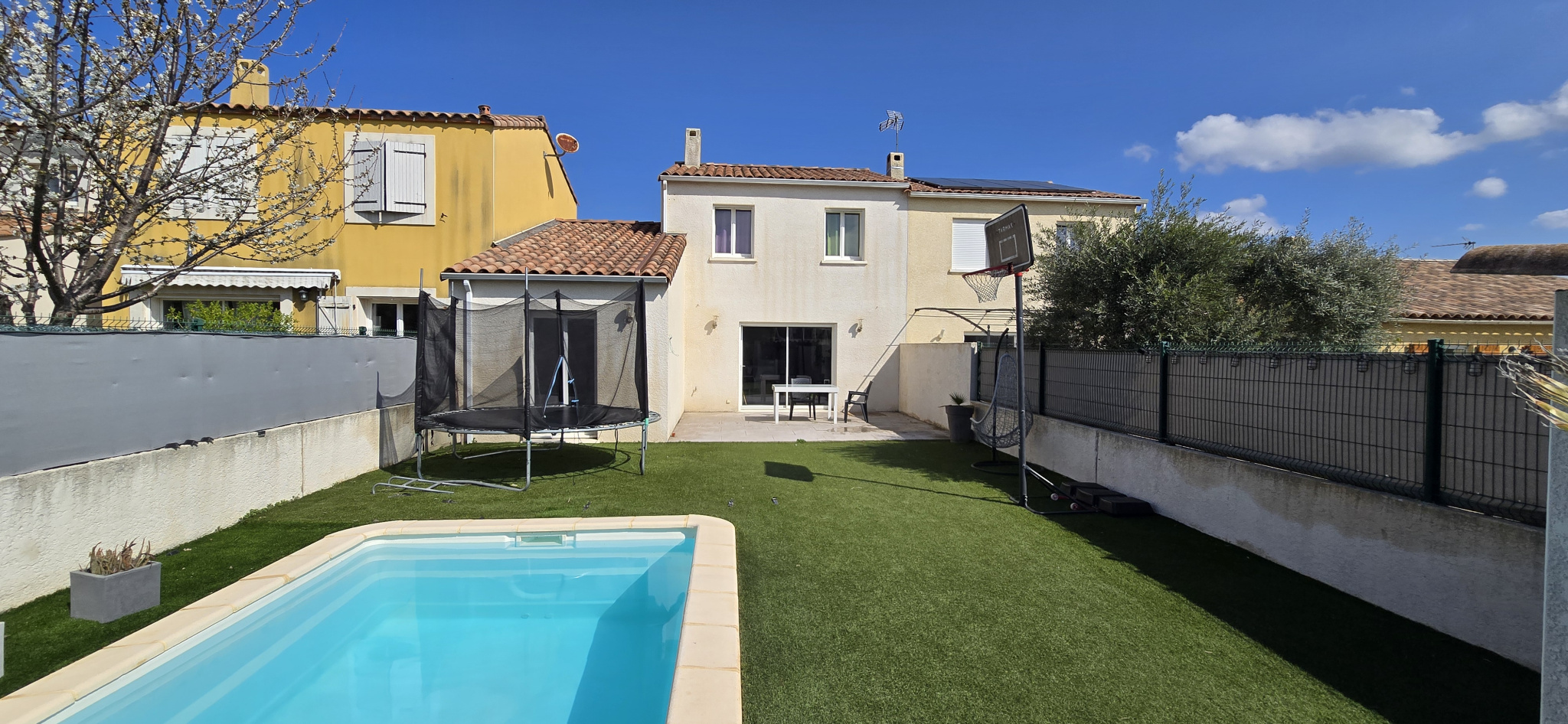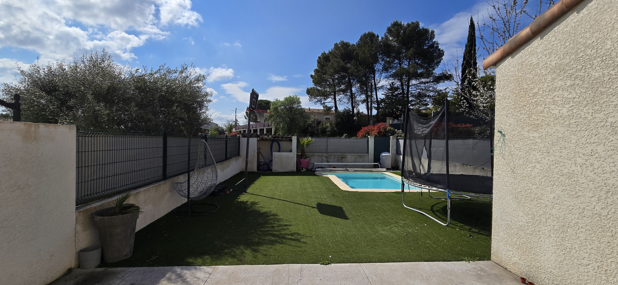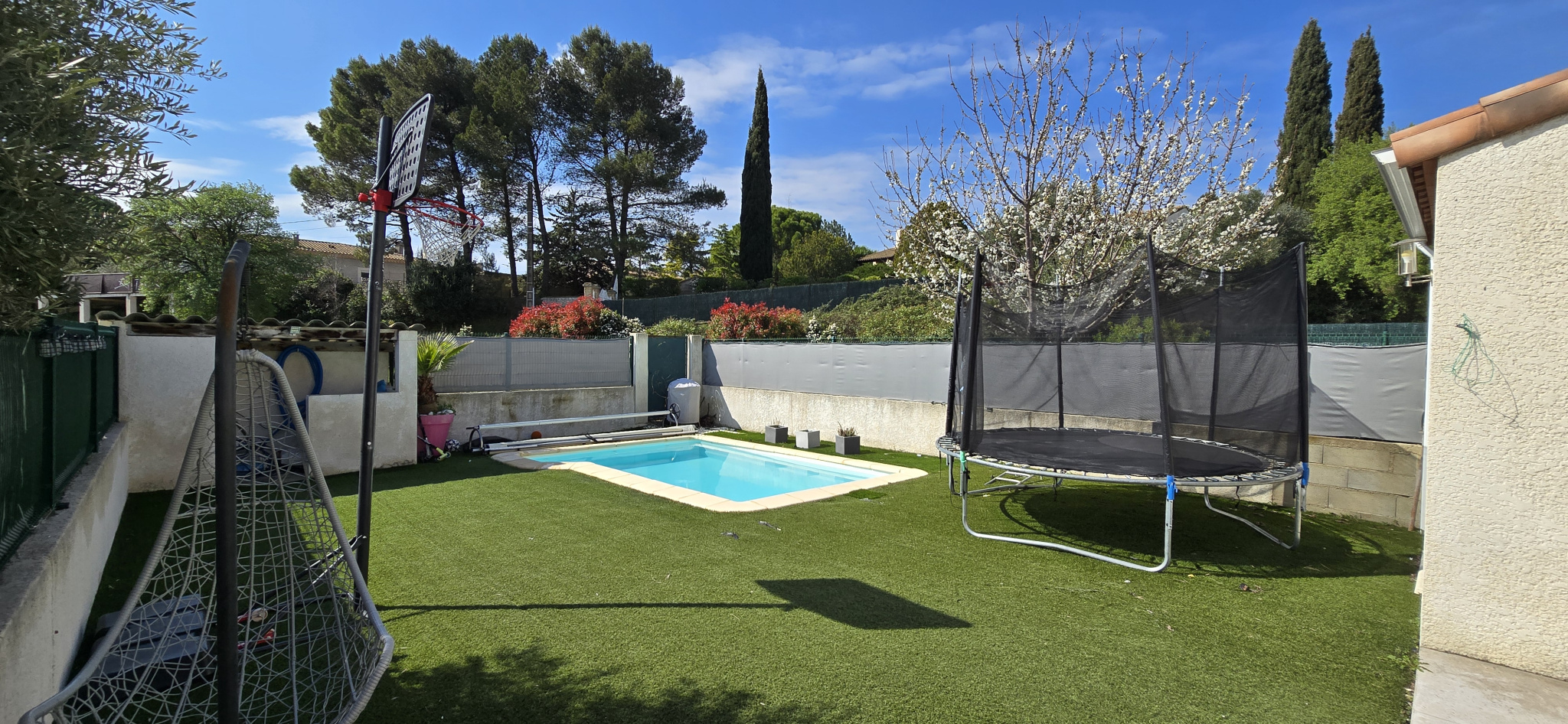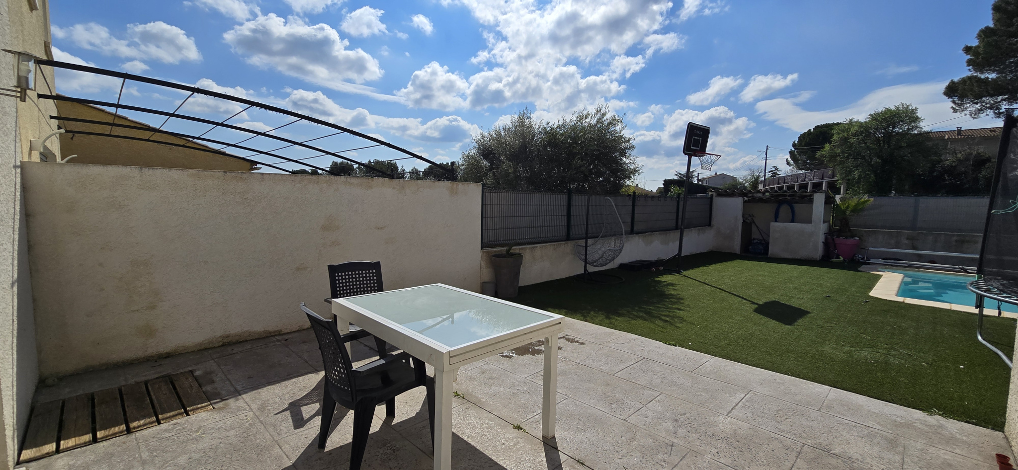 A l'extérieur; vous pourrez profiter d'une belle terrasse carrelée d'environ 25m2 donnant sur un jardin clos avec piscine traditionnelle.