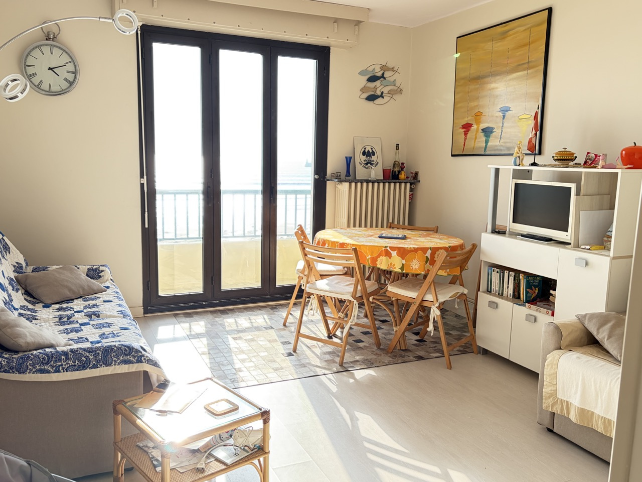 FACE A LA BAIE DES SABLES D'OLONNE - Appartement situé au 3éme étage avec ascenseur se composant d'un couloir d'entrée desservant les pièces de vie, séjour/salon FACE MER avec balcon et rangement rangement, cuisine indépendante, salle de bains, wc séparé. CAVE dans la résidence. Appartement lumineux. Possibilité de création, après travaux, d'un espace nuit séparé.