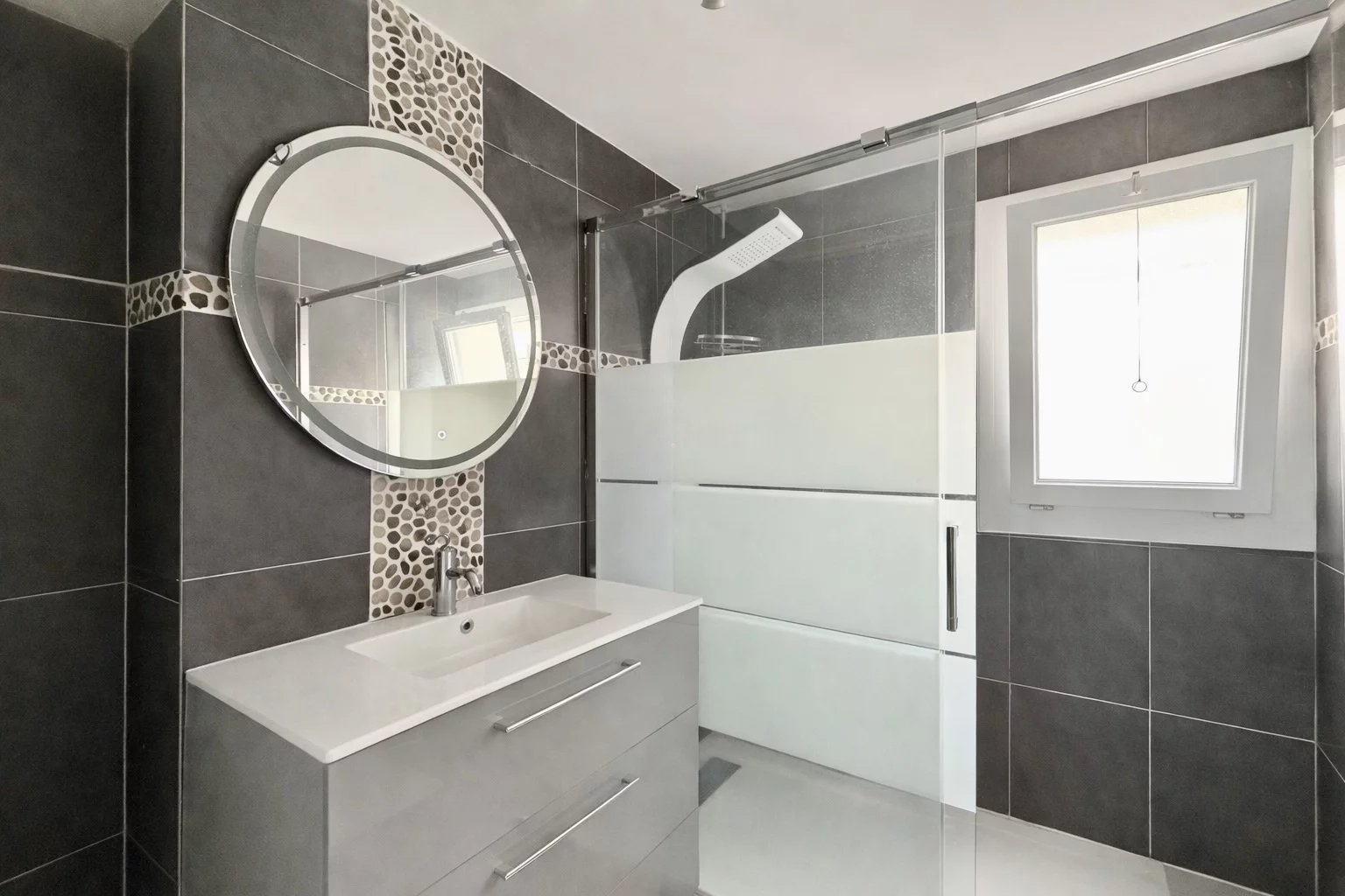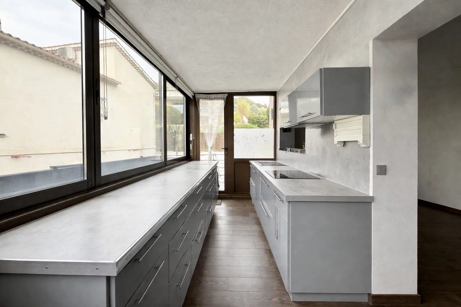 La pièce de vie, lumineuse et conviviale, offre un séjour avec cuisine ouverte, donnant accès à l’extérieur, prolongé par un agréable espace jardin avec cuisine d’été.