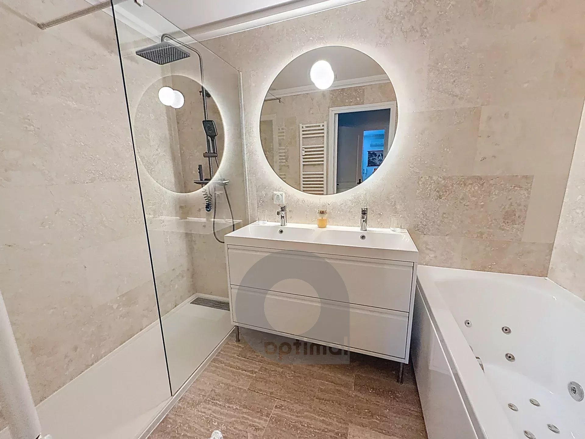 L'appartement est composé d'une belle pièce de vie avec cuisine ouverte sur le séjour, une salle d'eaux complète avec douche à l'italienne et baignoire balnéo, un WC indépendant.