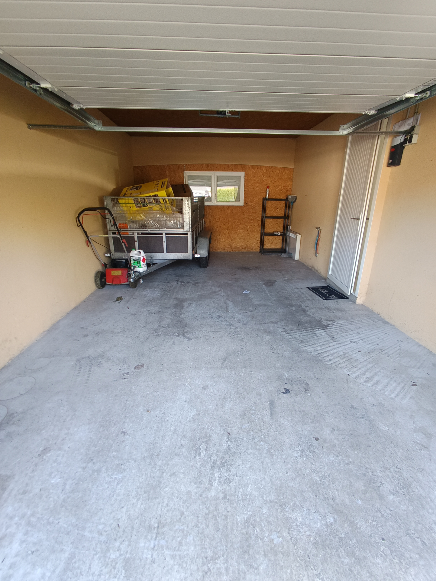 Garage, place de parking, terrasse exposée SUD OUEST, volets roulants manuels et électrique sur la baie vitrée. Chauffage électrique et poële à bois.