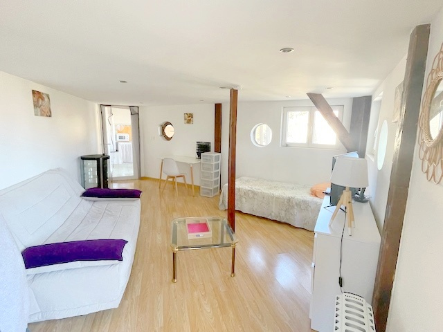 De plus son emplacement , tout en etant en retrait du village , elle bénéficie de tous les avantages du port , des plages , des commerces et ecoles , des bus et du bateau à 5 mn à pied .