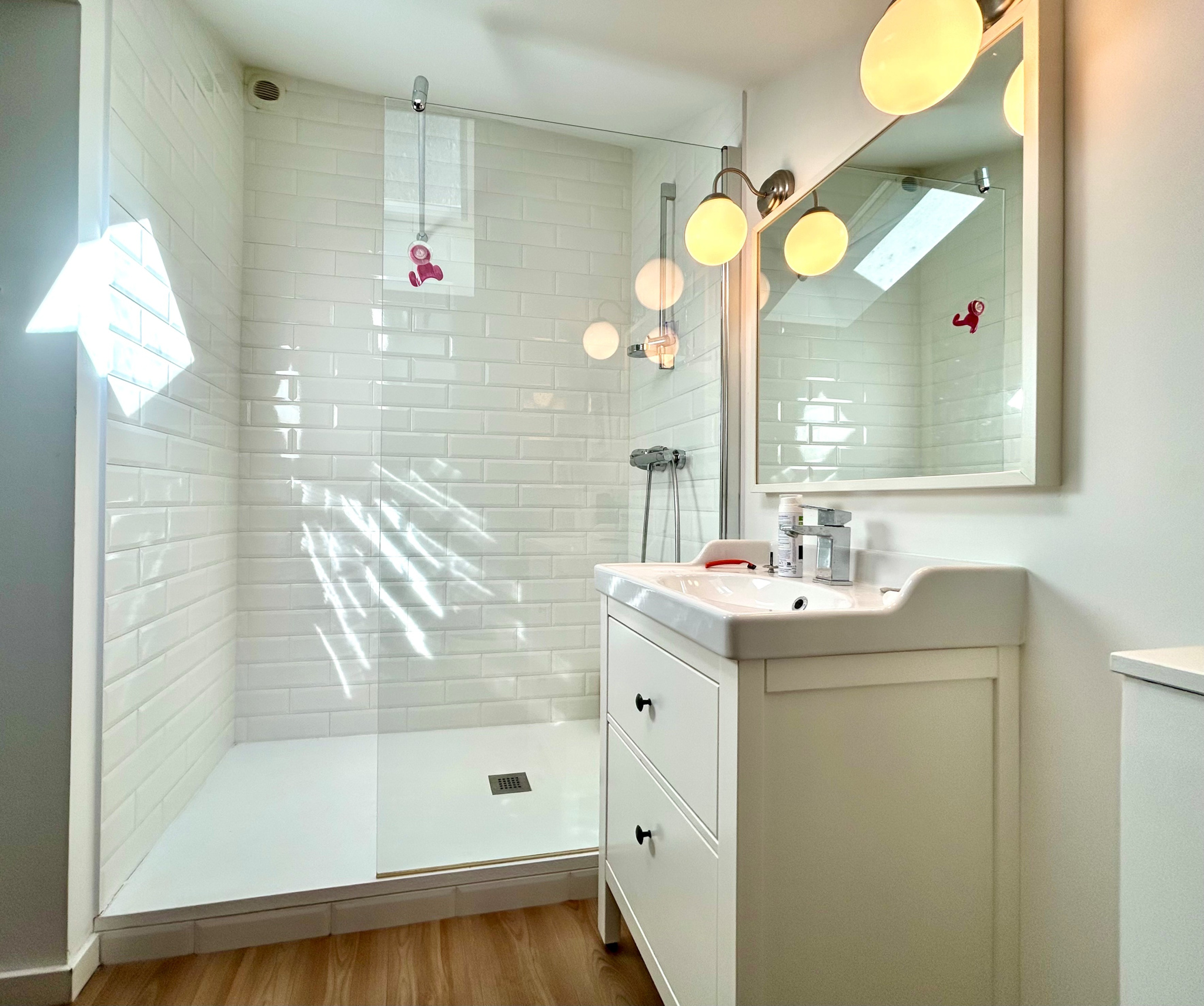 A l'étage, trois autres chambres avec deux salles d'eau privatives.