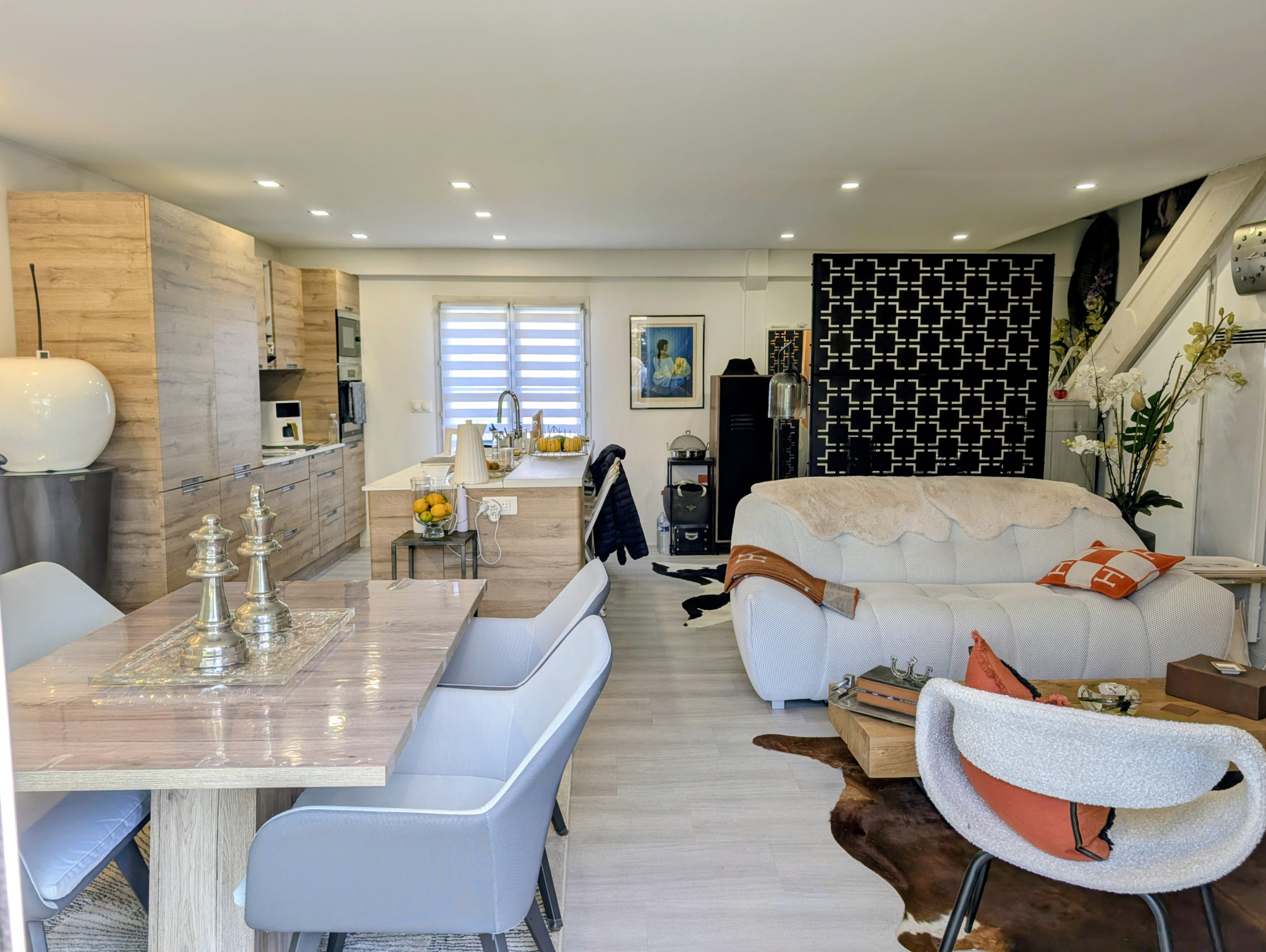Orléans sud, limite Olivet. Dans une résidence sécurisée, en retrait et au calme, charmante maison avec jardin et place de stationnement privée offrant un grand séjour avec placards et une superbe cuisine ouverte aménagée et équipée, un wc. A l'étage, trois chambres avec placards, une salle de bain avec douche et baignoire, double vasque et rangements, un wc. Dans un très bon état. Proche commerces et ligne de bus 1 au pied de la résidence. Charges annuelles : 550 EUR. 02.38.53.57.42 - cabinetderocquigny@wanadoo.fr Les informations sur les risques auxquels ce bien est exposé sont disponibles sur le site Géorisques : www.georisques.gouv.fr. Cabinet de Rocquigny Gilles DRESCH 06.22.85.04.86 cabinetderocquigny.com