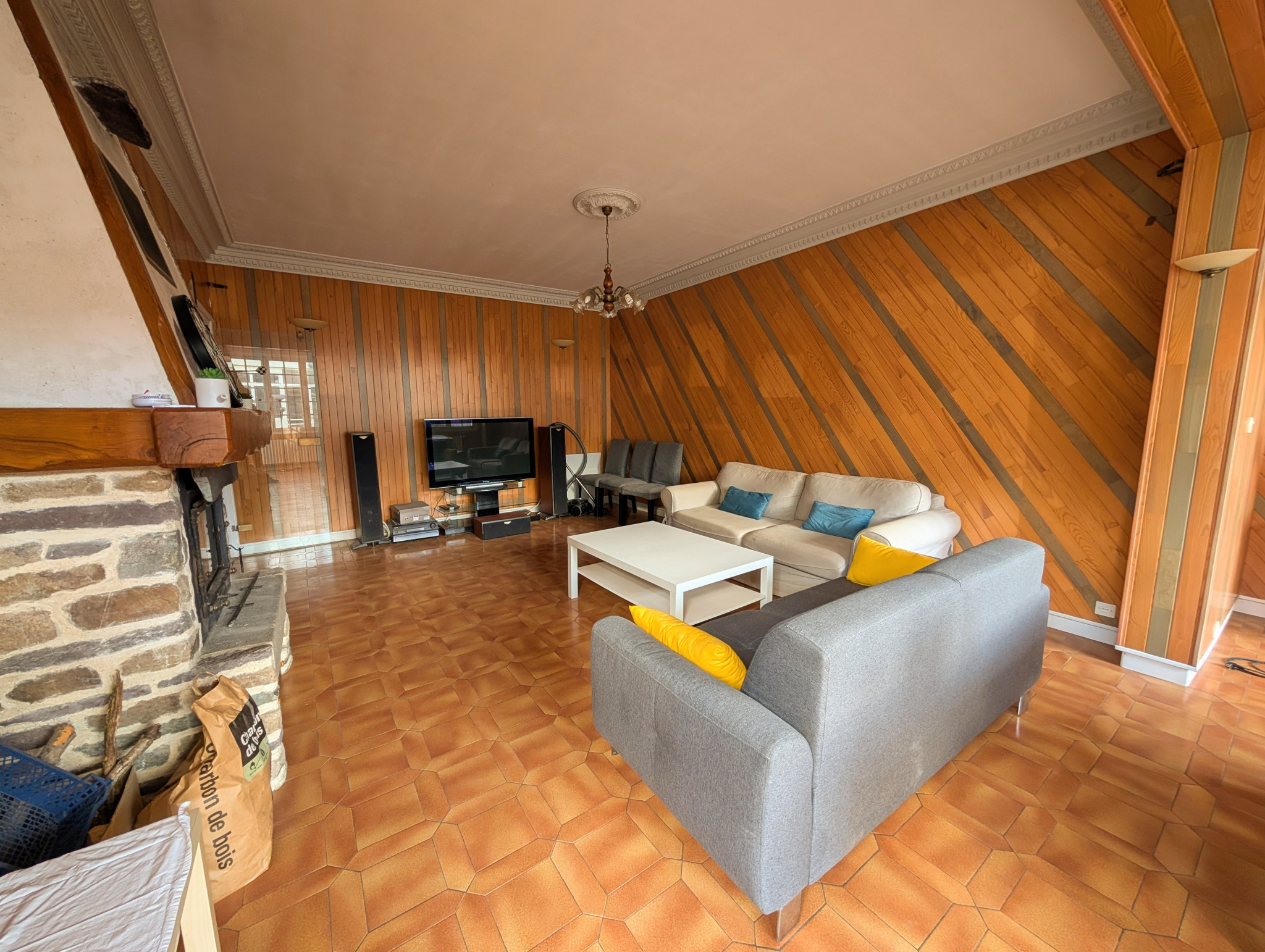 Au Rez-de-Chaussée cette maison est composée d'une cuisine aménagée et équipée fonctionnelle, d'un vaste salon-séjour de caractère, agrémenté d'une cheminée, idéal pour les moments de convivialité et d'un WC indépendant.